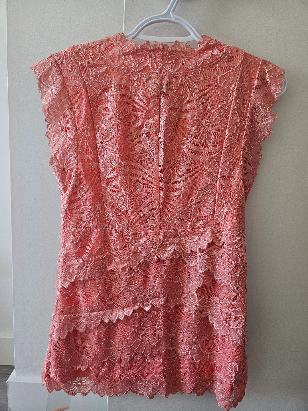 Selling a beautiful Le Chateau lace top in a coral colour. sequins work. size medium and in great condition. Perfect for party, wedding etc