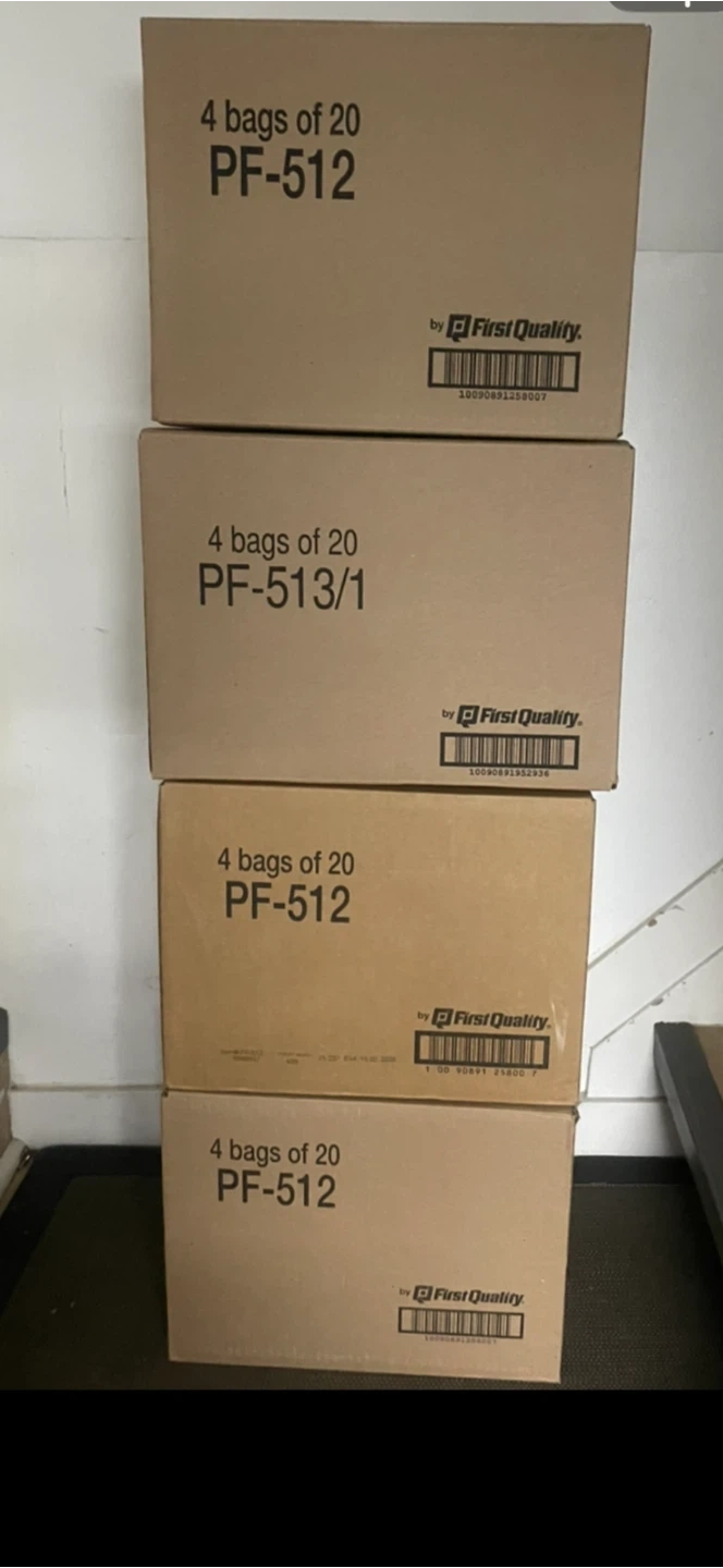 This listing is for a case containing 4 bags of 20 items each, for a total of 80 items. The case includes boxes marked PF-512 and PF-513/1. Brand is First Quality. Each bag contains 20 units.