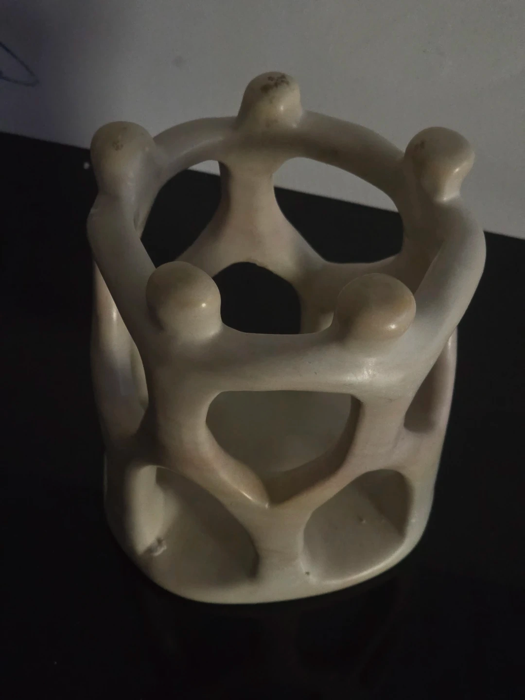 This item is a "Circle of Friends" sculpture, likely hand-carved from Kisii soapstone in Kenya.