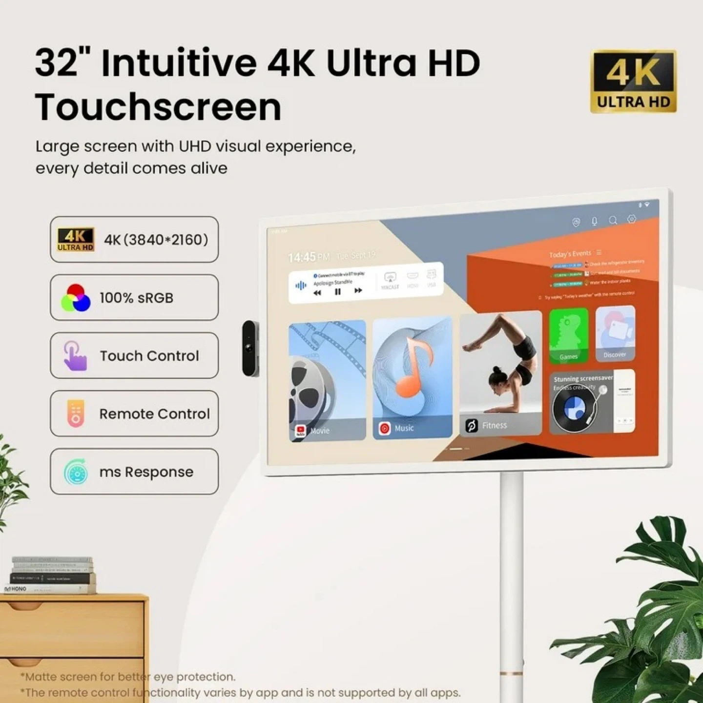 Vivid Touchscreen Display: Features a 32-inch 4K Ultra HD touchscreen with 3840x2160 resolution and 10-point multi-touch for sharp visuals and interactive use.