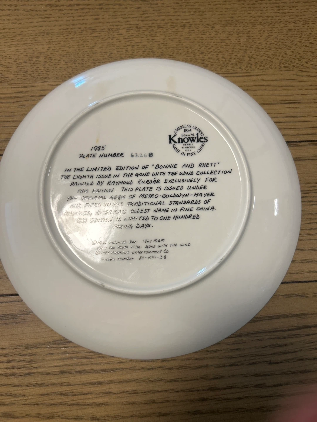 1985 Knowles "Bonnie and Rhett" Collector Plate