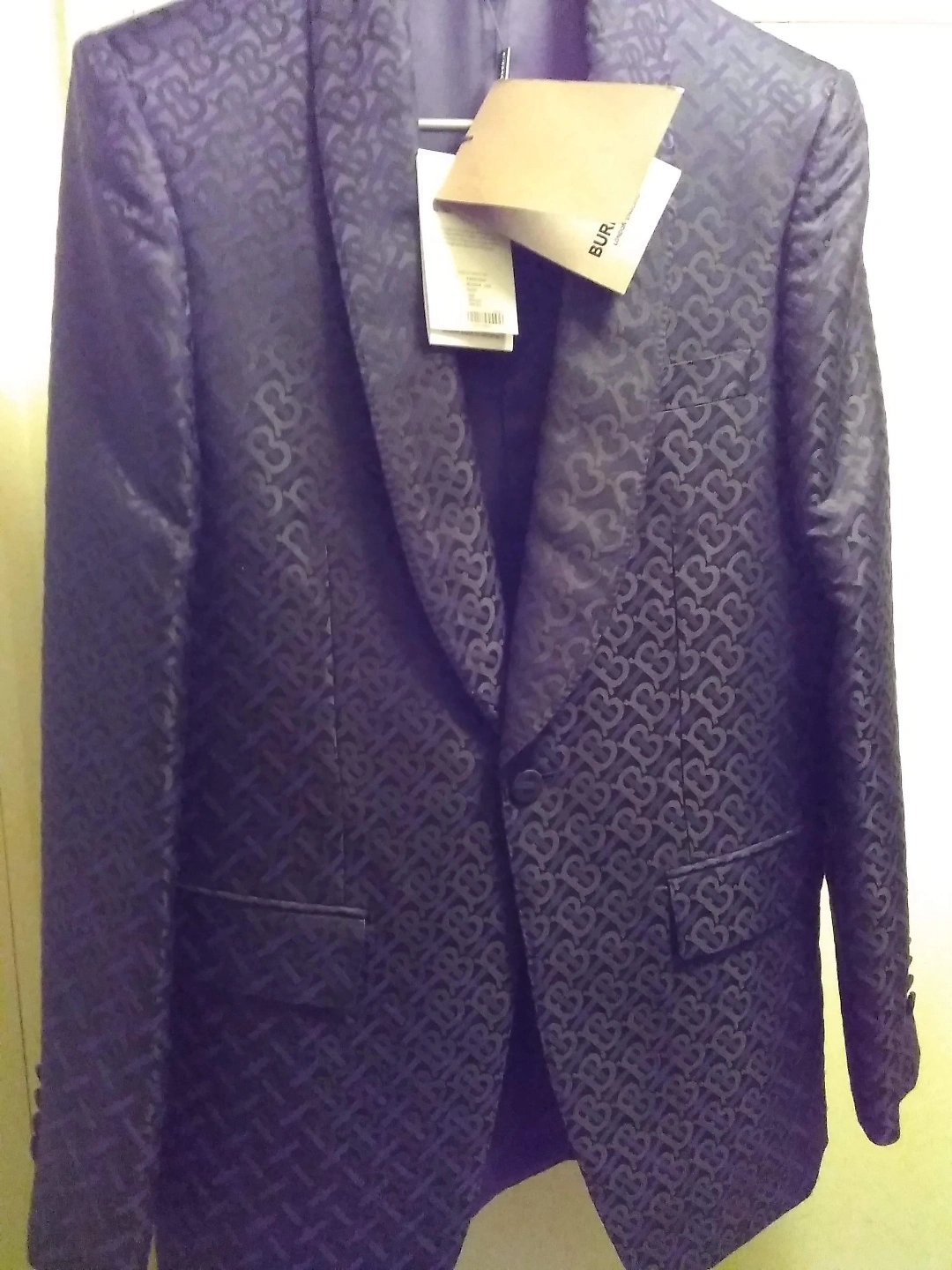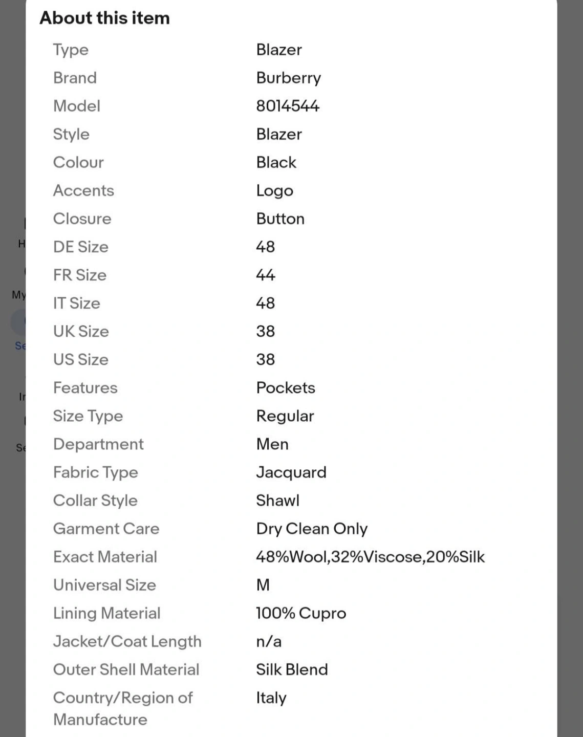 Authentic Burberry Men's black blazer. Regular fit. Shawl collar. Button closure. Features pockets. Silk blend fabric. Dry clean only. Made in Italy. Brand new. Regular retail price $2,565