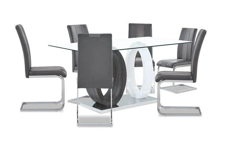 Jaye 7pc Dining Set with Table & 6 Chairs, Glass Top, Pedestal B