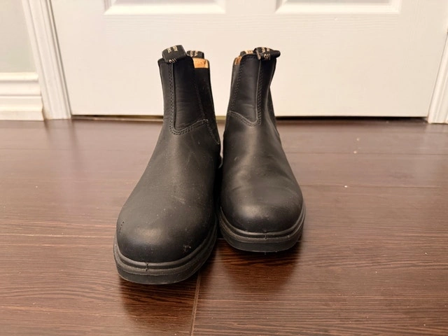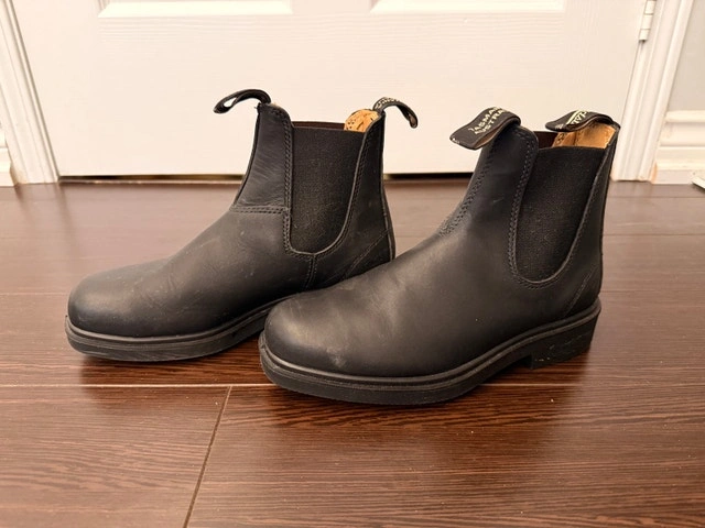 Classic black leather Blundstone Chelsea boots. Made with genuine leather and synthetic lining, featuring elastic side panels. Great for everyday wear. Australian size 3, US size 6, EU 36. Condition: Used - Like new. Cash accepted.