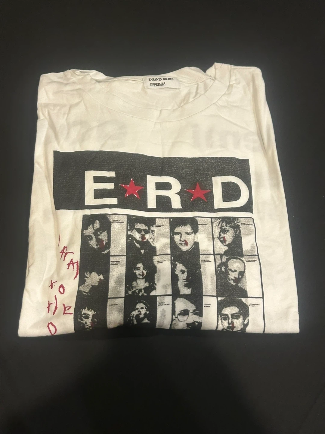 Selling an ERD white graphic.It has a unique design with faces and lettering. It's in great condition and ready for a new home!