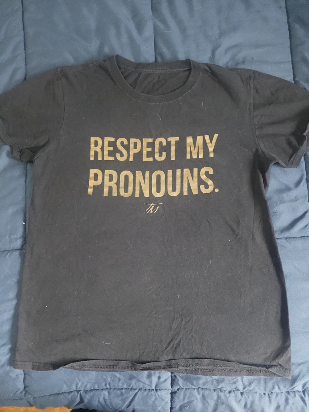 - "Respect My Pronouns' tshirt. SIZE L. from Toronto company, Toni Marlow
