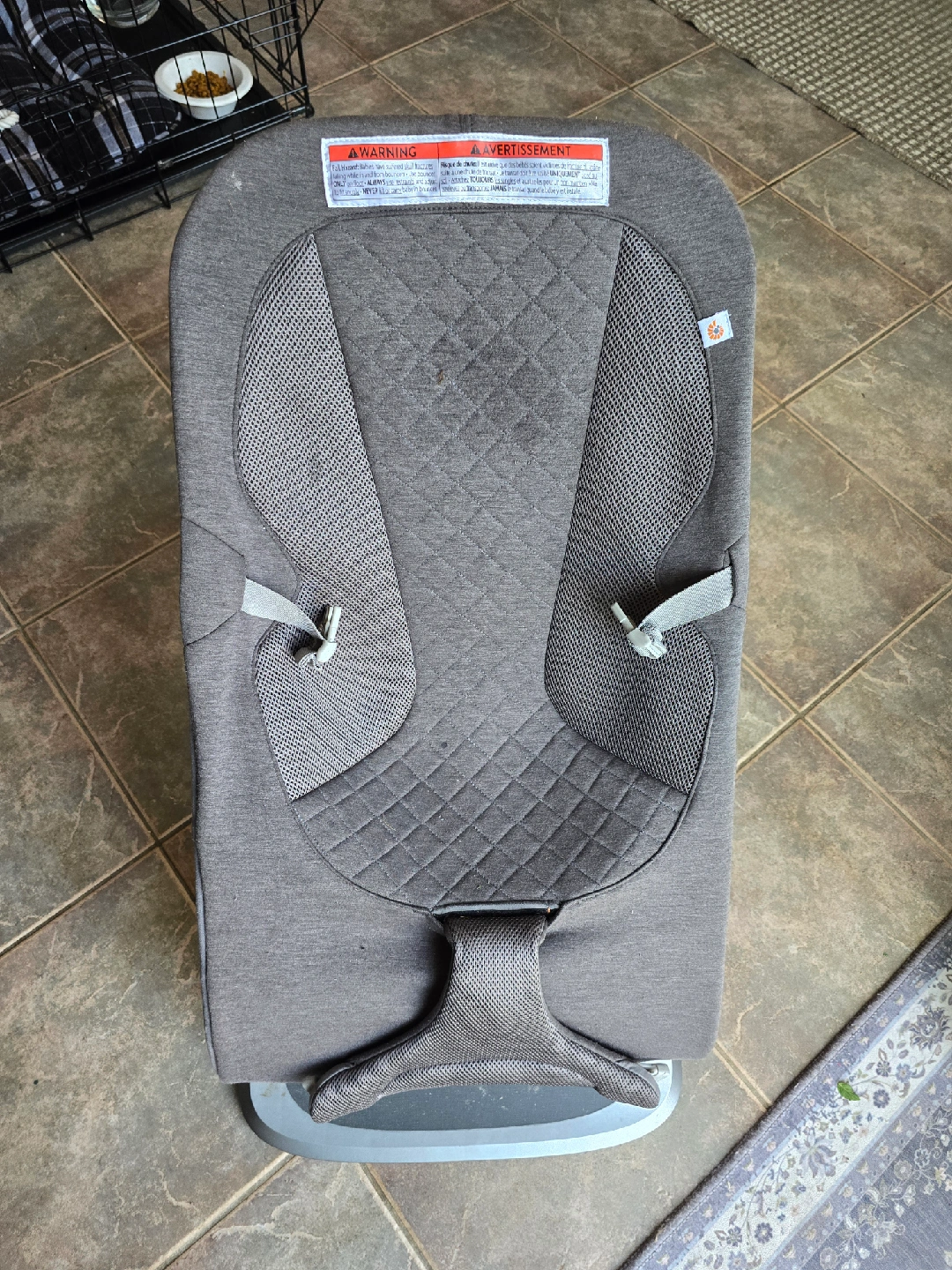 Selling a gently used Ergobaby Evolve bouncer in a neutral grey colour. It's in great condition and ready for a new home! The bouncer is designed to provide ergonomic support for your little one, making it a comfy and safe place for them to relax or play. The fabric is soft and easy to clean, and the bouncer is lightweight and easy to move around the house. Perfect for keeping baby happy while you get things done!