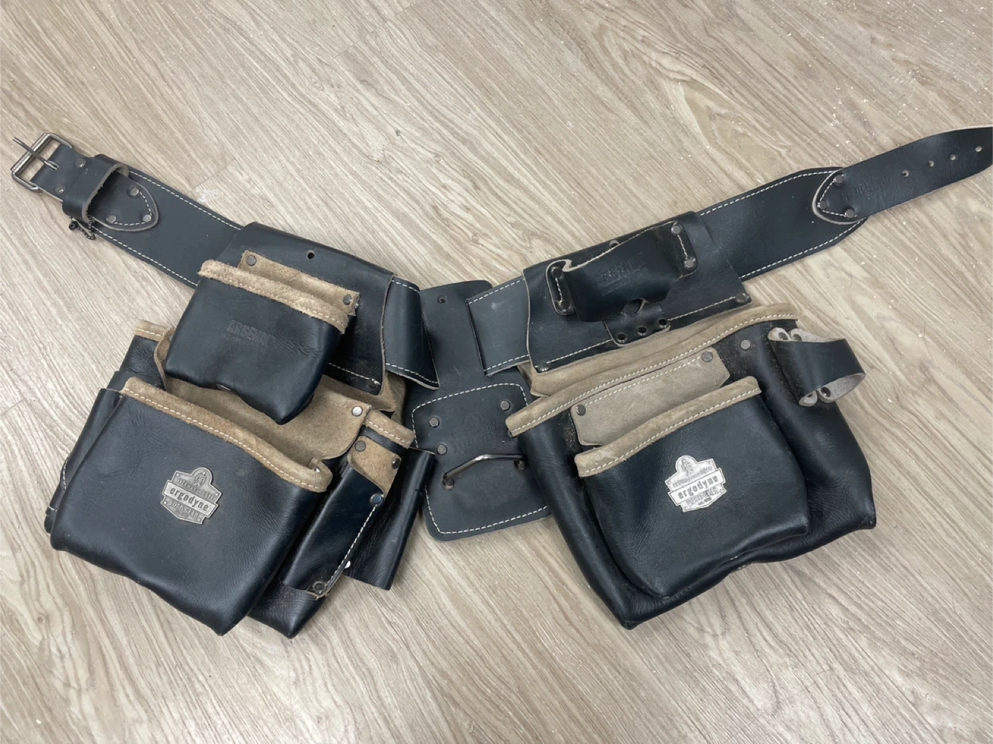 Selling a full leather black Ergodyne Arsenal 5500 tool belt. This tool belt is designed for comfort and durability, perfect for any job site. It features multiple pouches and holders to keep your tools organized and easily accessible. The belt is in great condition and ready for its next project!