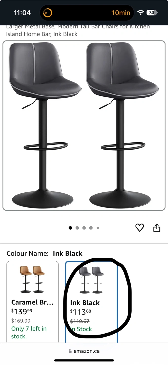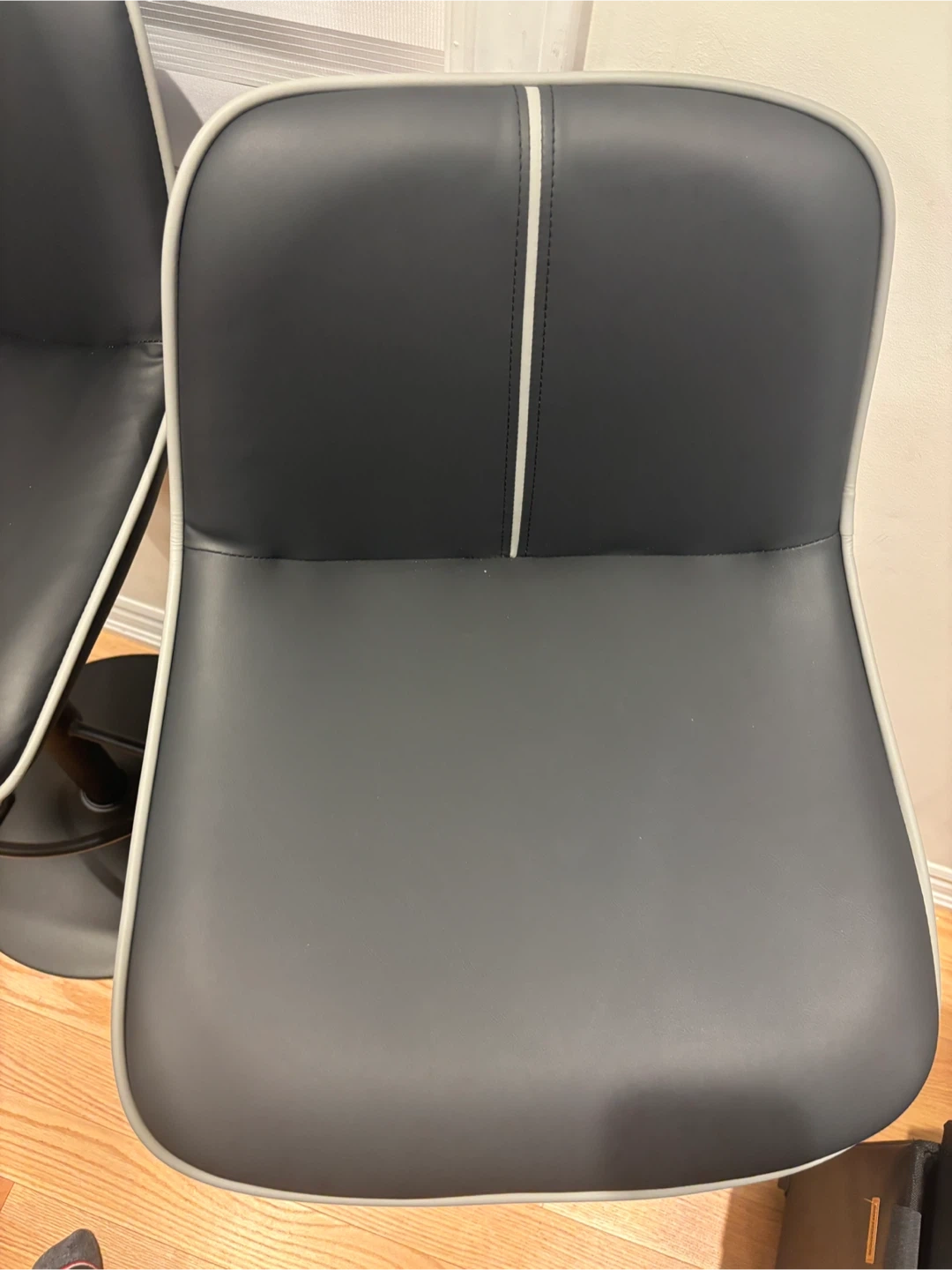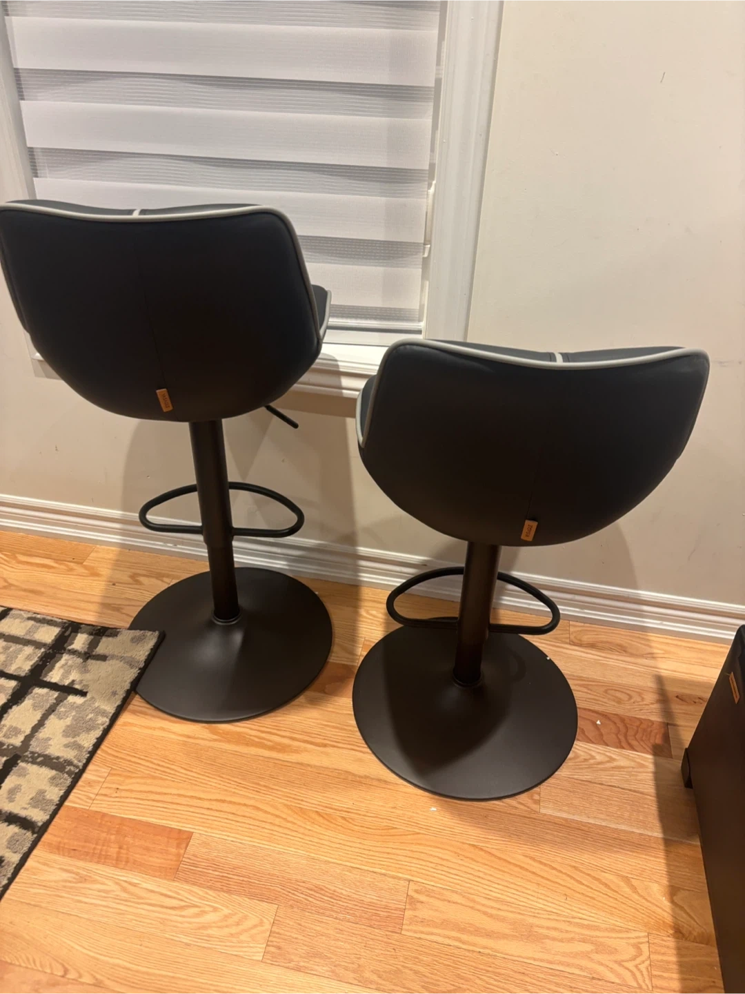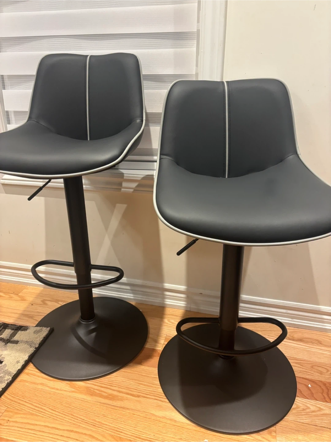 202Adjustable Height Swivel Barstools with Ergonomic Backrest, Synthetic Leather, Larger Metal Base, Modern Tall Bar Chairs for Kitchen Island Home Bar, Ink Black The dimensions are: - 13.4" (34 cm) wide - 10" (25.5 cm) high (seat back) - Seat is 17.7" (45 cm) deep and 19.5" (49.5 cm) wide - Adjustable height from 34.8-43.1" (88.5-109.5 cm) - Base is 17.7" (45 cm) wide Each stool can hold up to 265 lb (120 kg) Available for pickup and delivery