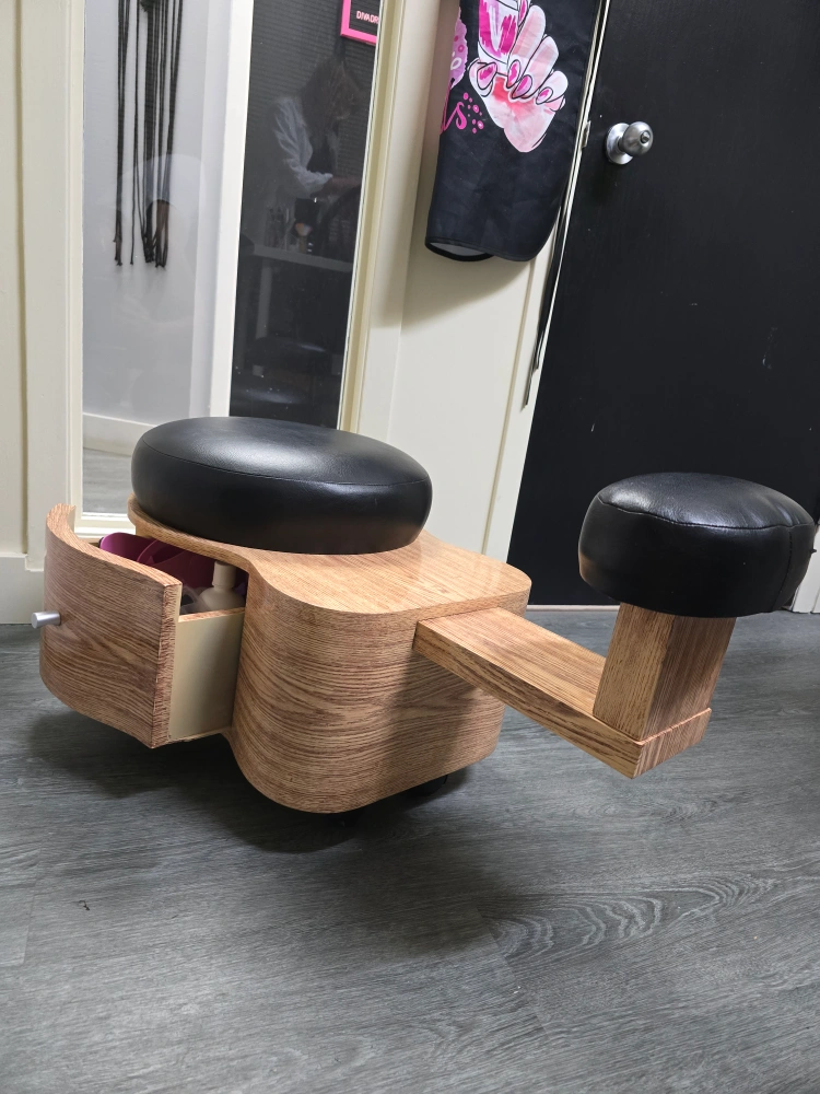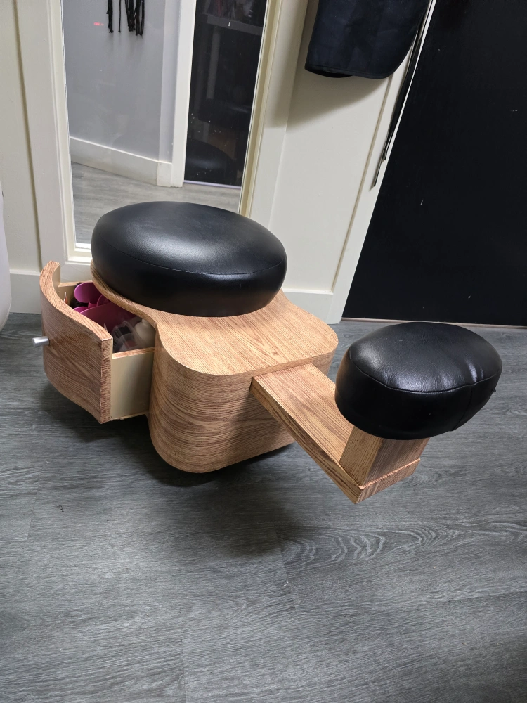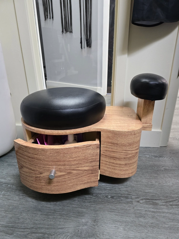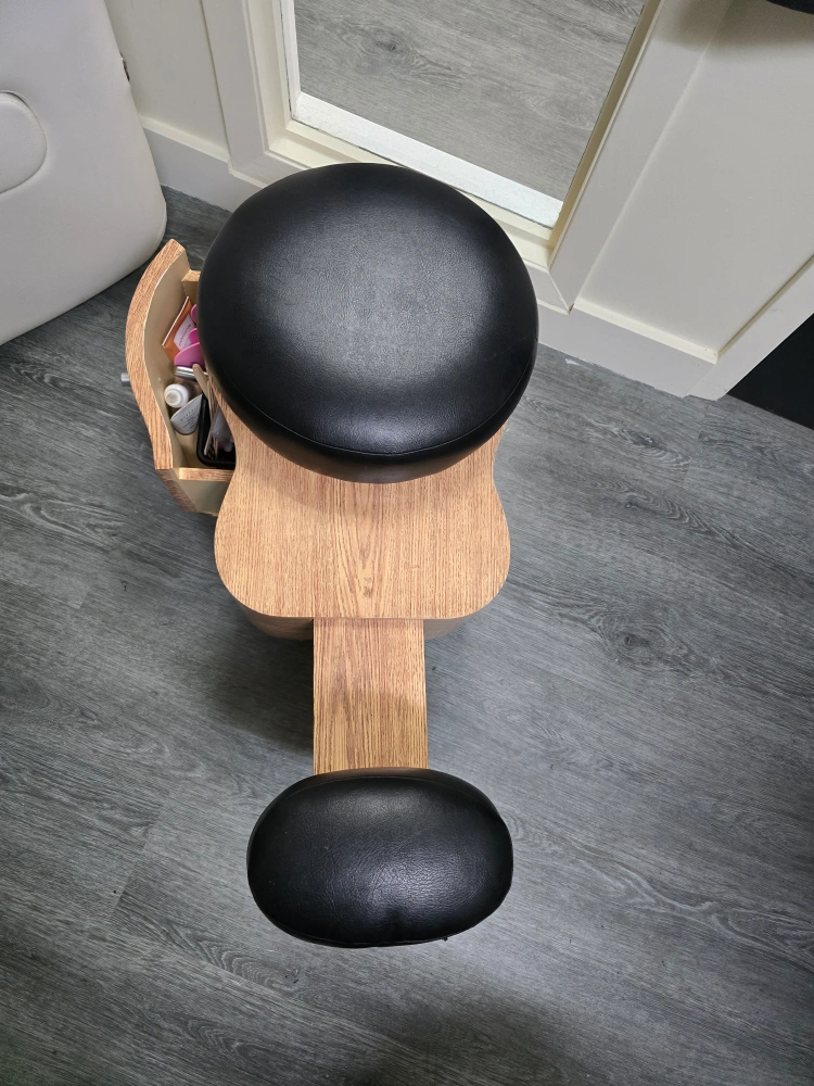18Looking to improve your posture? Check out this kneeling chair! It features a comfortable black seat and knee rest, along with a handy storage drawer. Perfect for your home office or studio