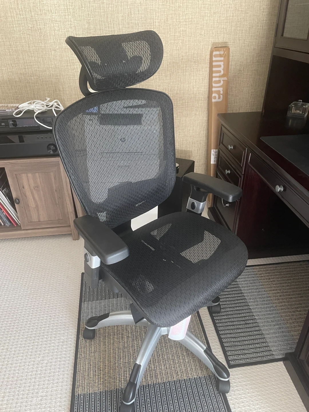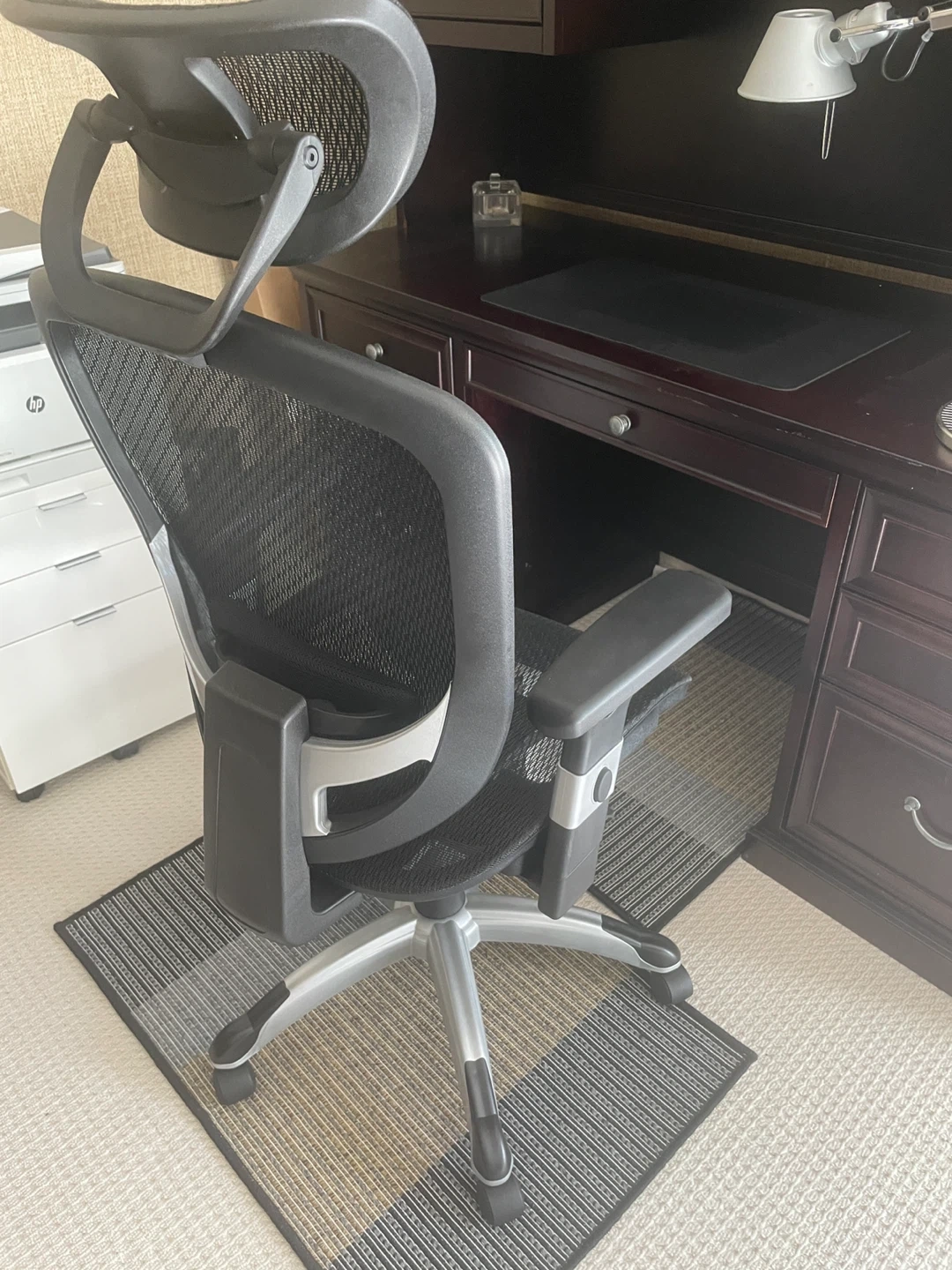 Selling a comfortable ergonomic office chair in great condition. It features a breathable mesh back and adjustable headrest for optimal support during long work hours. The chair is designed to promote good posture and reduce back strain. Perfect for your home office setup!