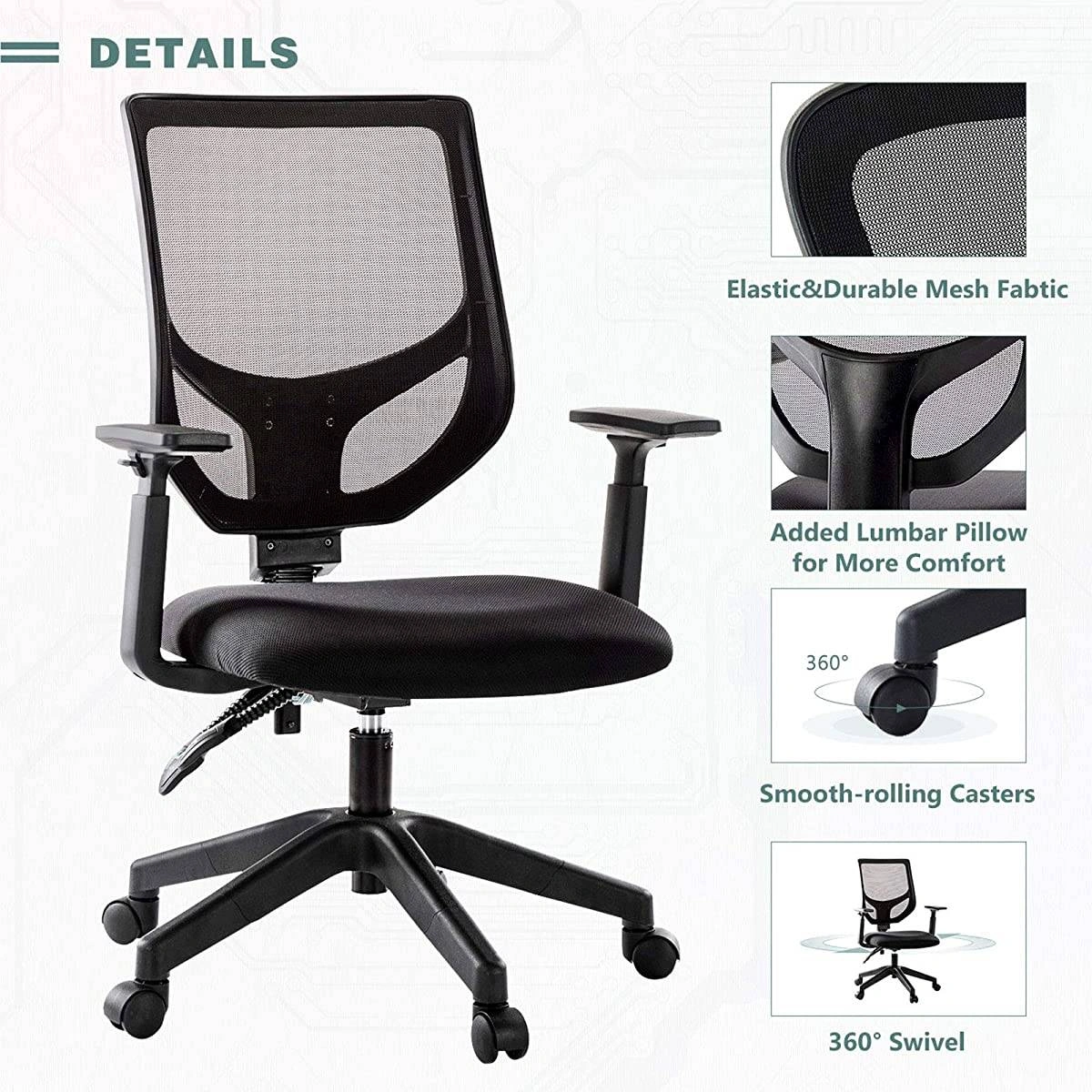 10- Rimiking Mesh Office Chair, Mid Back Ergonomic Swivel Black Mesh Computer Chair Adjustable Height and Armrest with Lumbar Support Task Chair - Almost New Office Chair – Gently Used 1 Year Reference: https://www.ubuy.ca/en/product/DOJW9RI-rimiking-mesh-office-chair-mid-back-ergonomic-swivel-black-mesh-computer-chair-adjustable-height-and-armrest-with-lumbar-support-task-chair?ref=hm-google-redirect