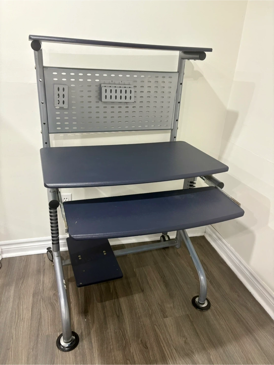 10Selling a handy ergonomic rolling computer desk! It's perfect for small spaces or for moving your workspace around. It features a sturdy design with a keyboard tray and a monitor shelf. Great for students or anyone working from home