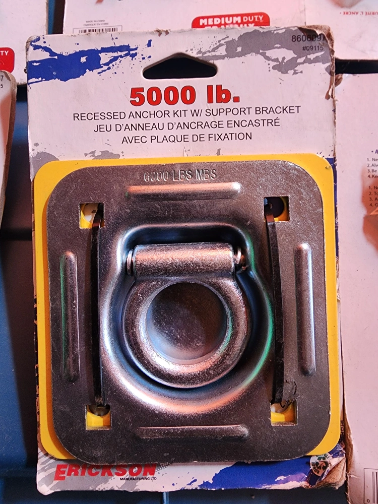 83Selling new Erickson recessed anchor kits with support brackets. These are medium duty and have a 5000 lb capacity. Great for securing anchors!
