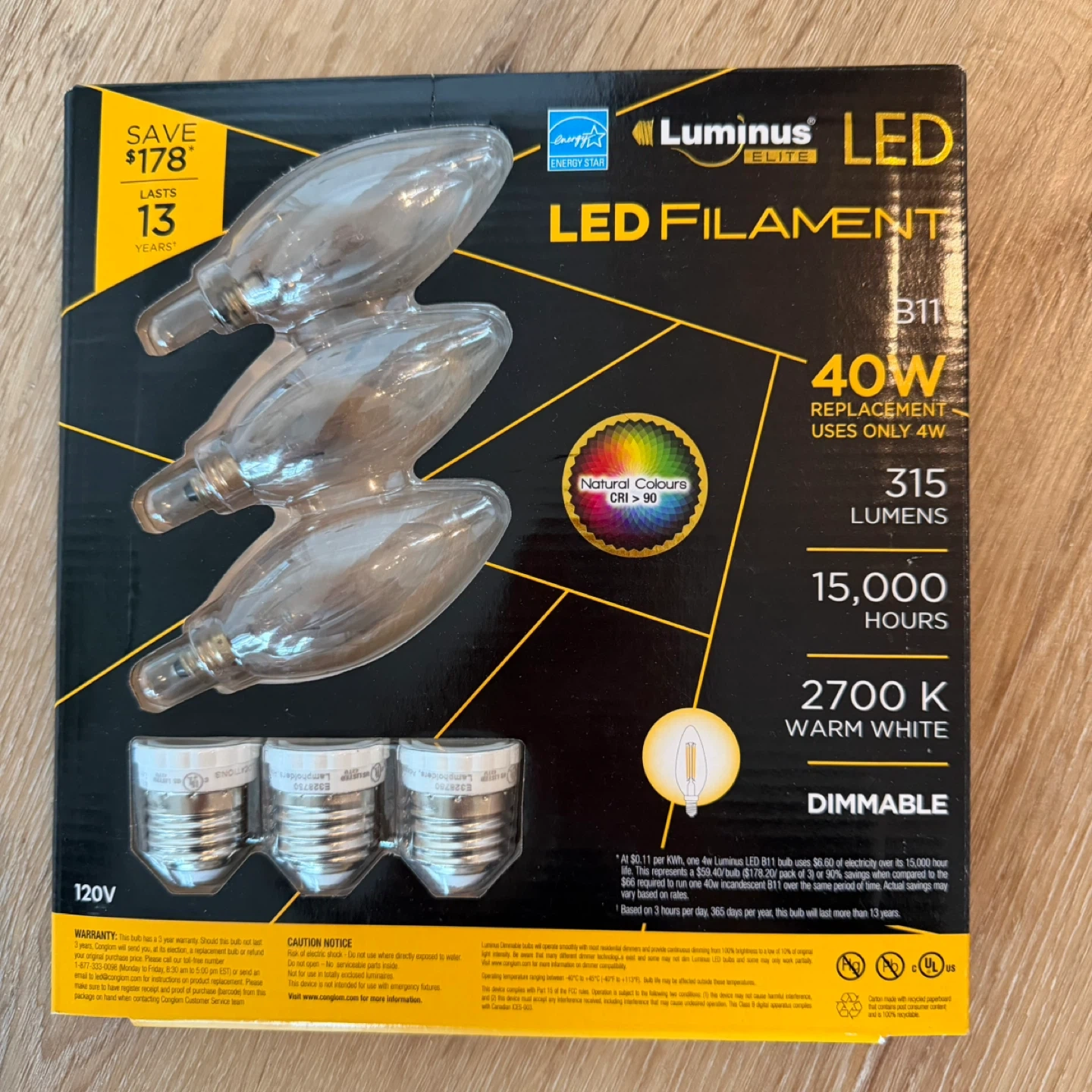 It comes with dimmable LED bulbs (photo #2)