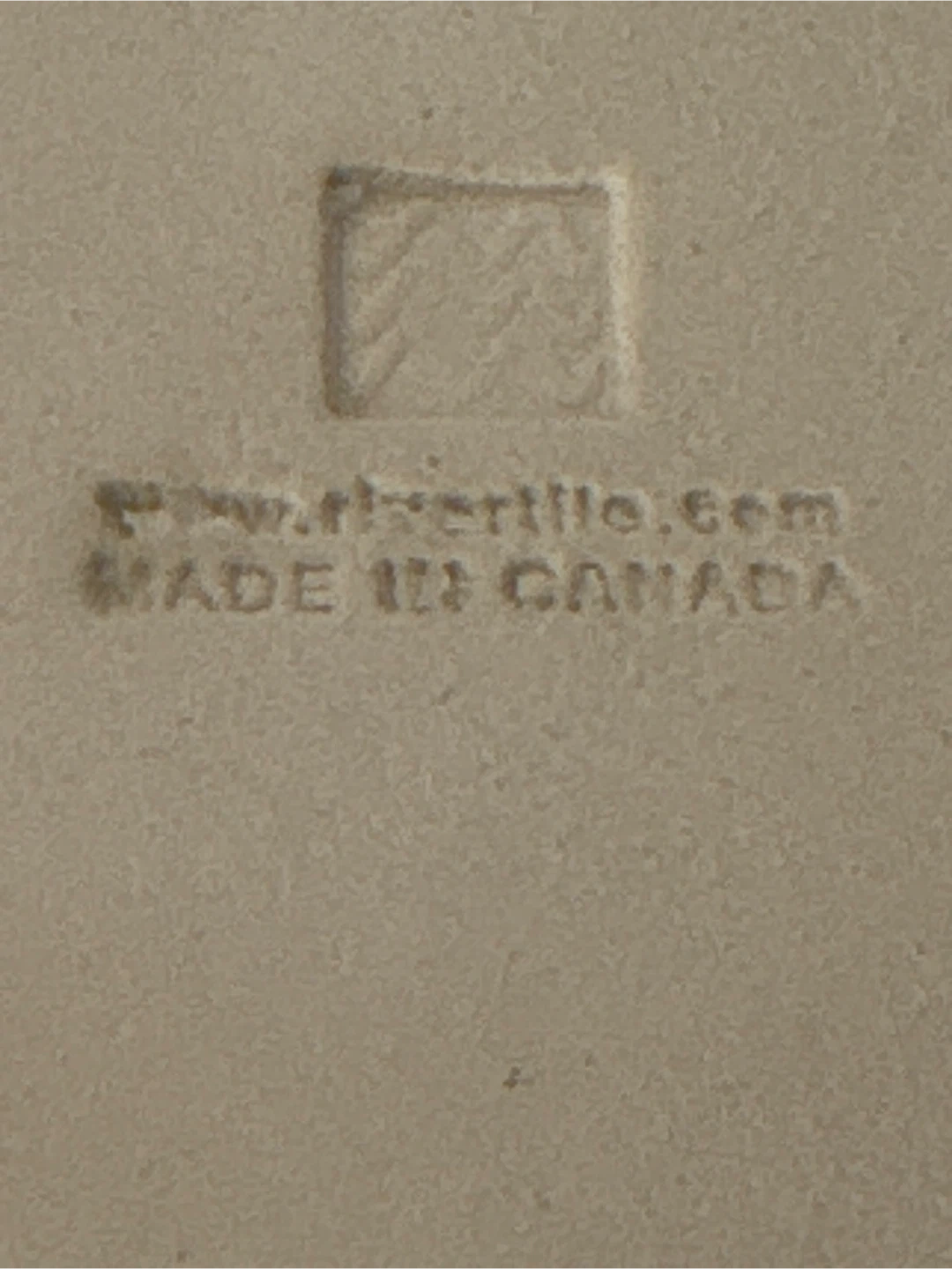 Handcrafted ceramic plate featuring a detailed fern embossed design. This piece is a light blue-green glaze. It's made in Canada.