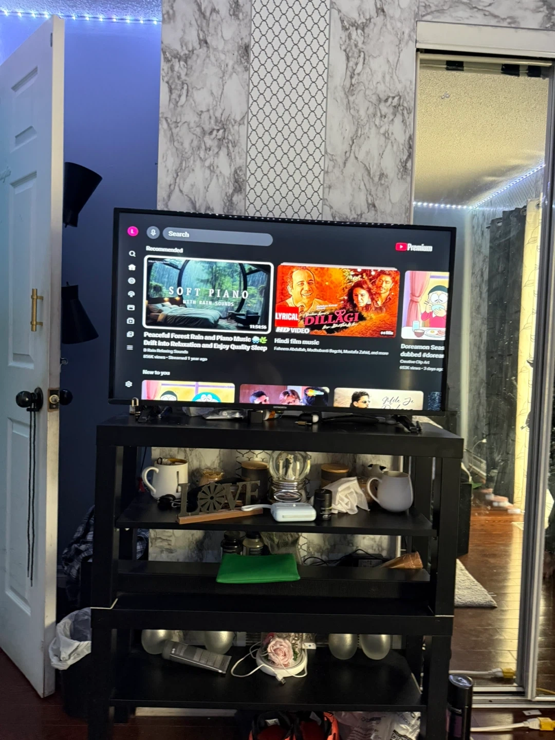 This is a 40 inch smart television. It runs on the Android TV platform, offering access to various streaming apps. and has a sleek design. It is in perfect condition also has original box
