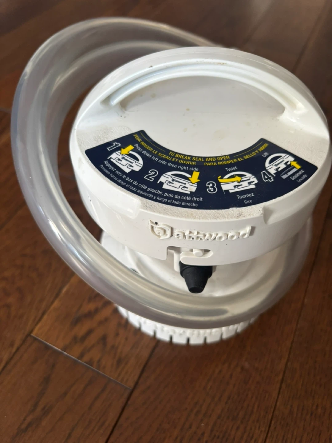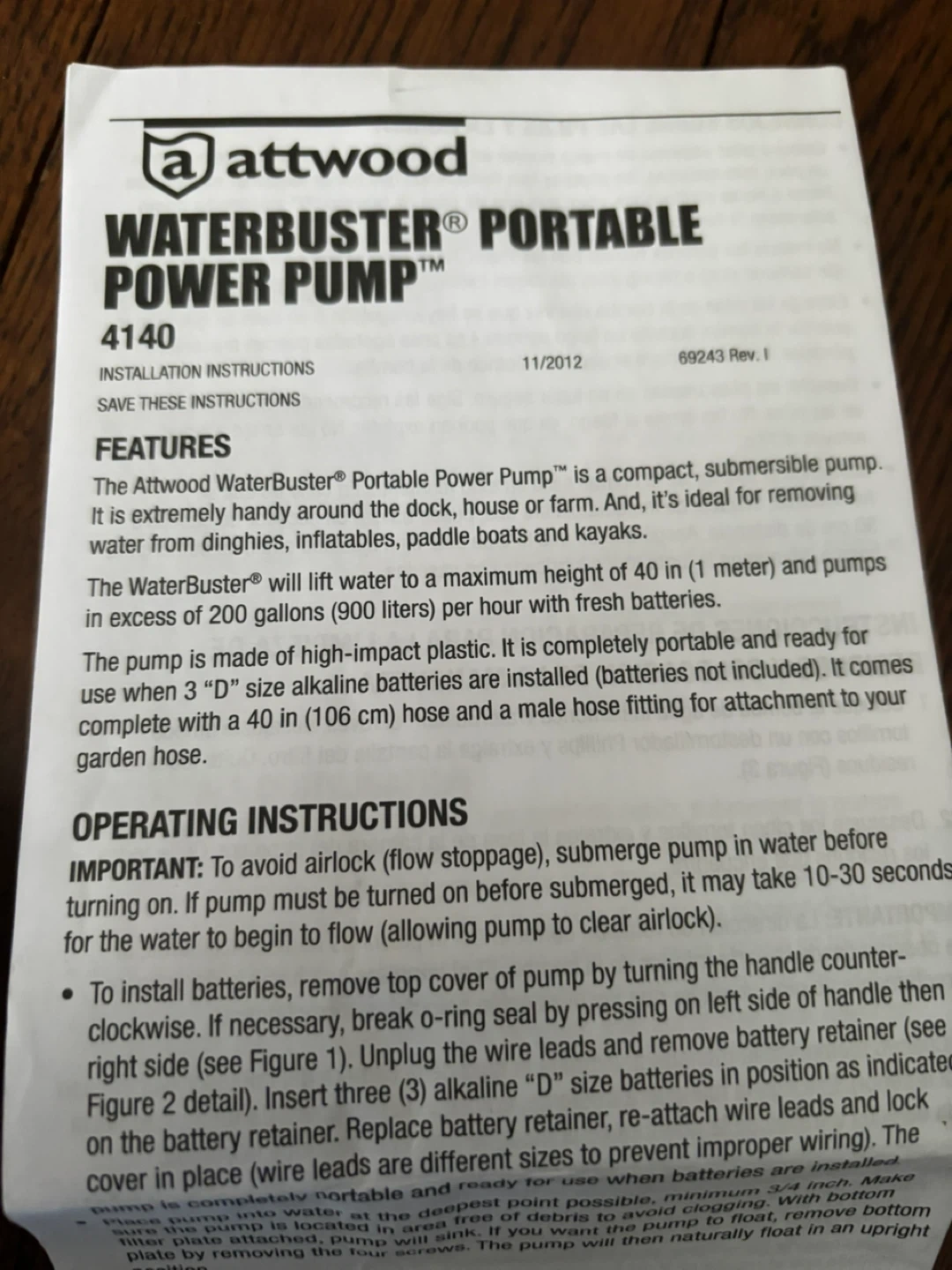 This Attwood WaterBuster Portable Power Pump is compact and submersible. It pumps up to 200 gallons per hour or over 3 gallons per minute. Includes a garden hose adapter.
