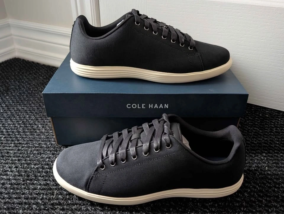 Selling brand new Cole Haan Grand Crosscourt II Canvas sneakers in black canvas with an ivory sole. Never worn and comes with the original box.
