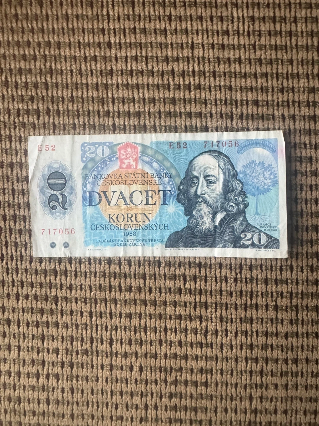 Vintage Czechoslovakian 20 Korun Banknote