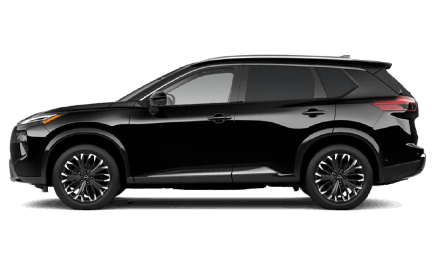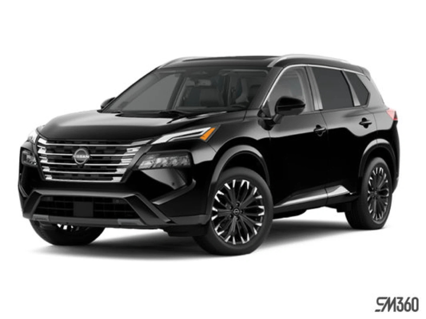 This is a black Nissan Rogue Platinum AWD SUV. It's a four-door vehicle with a sleek design and stylish alloy wheels. Comes with automatic transmission and ample cargo space.