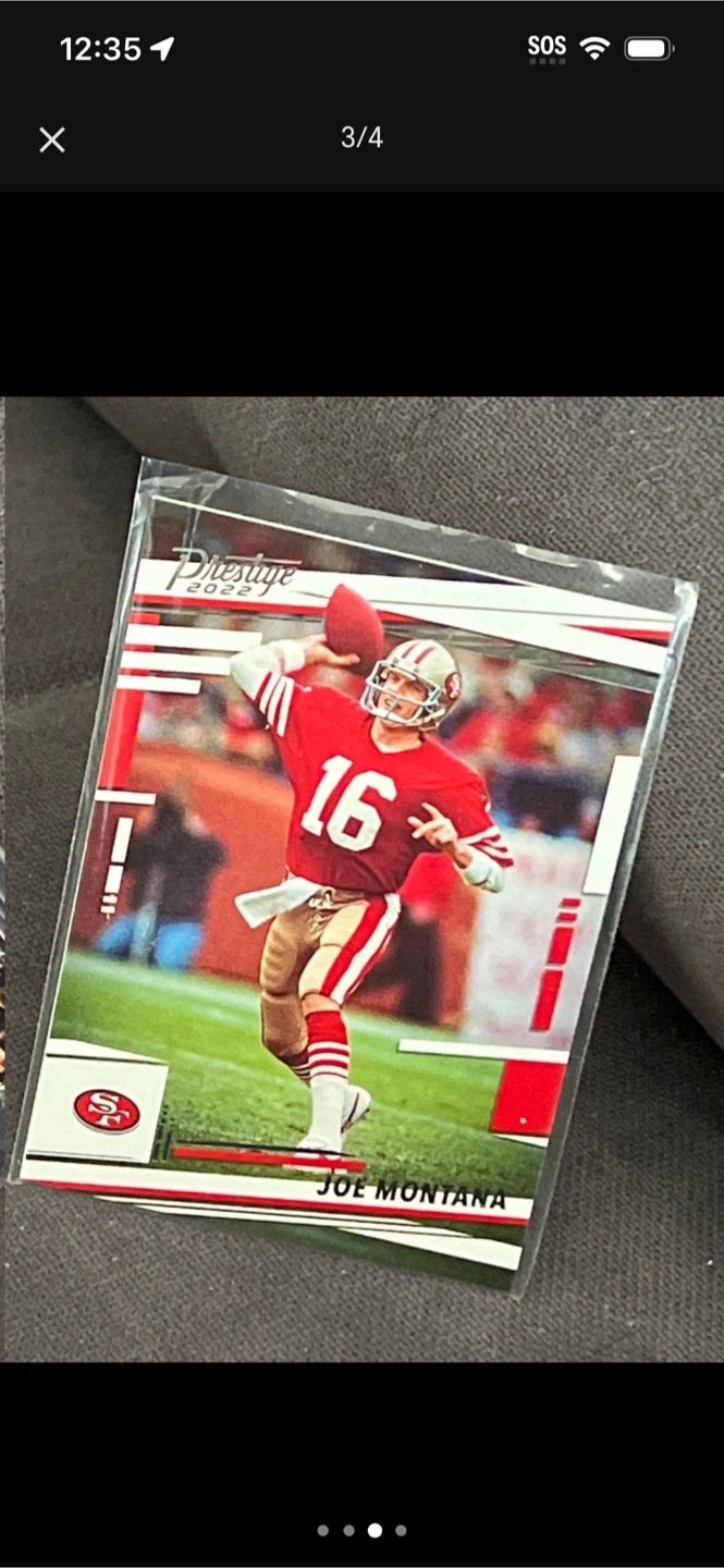 Panini Prestige 2022 Joe Montana football card. Features the legendary quarterback in his iconic 49ers uniform. A great card for any football collector!