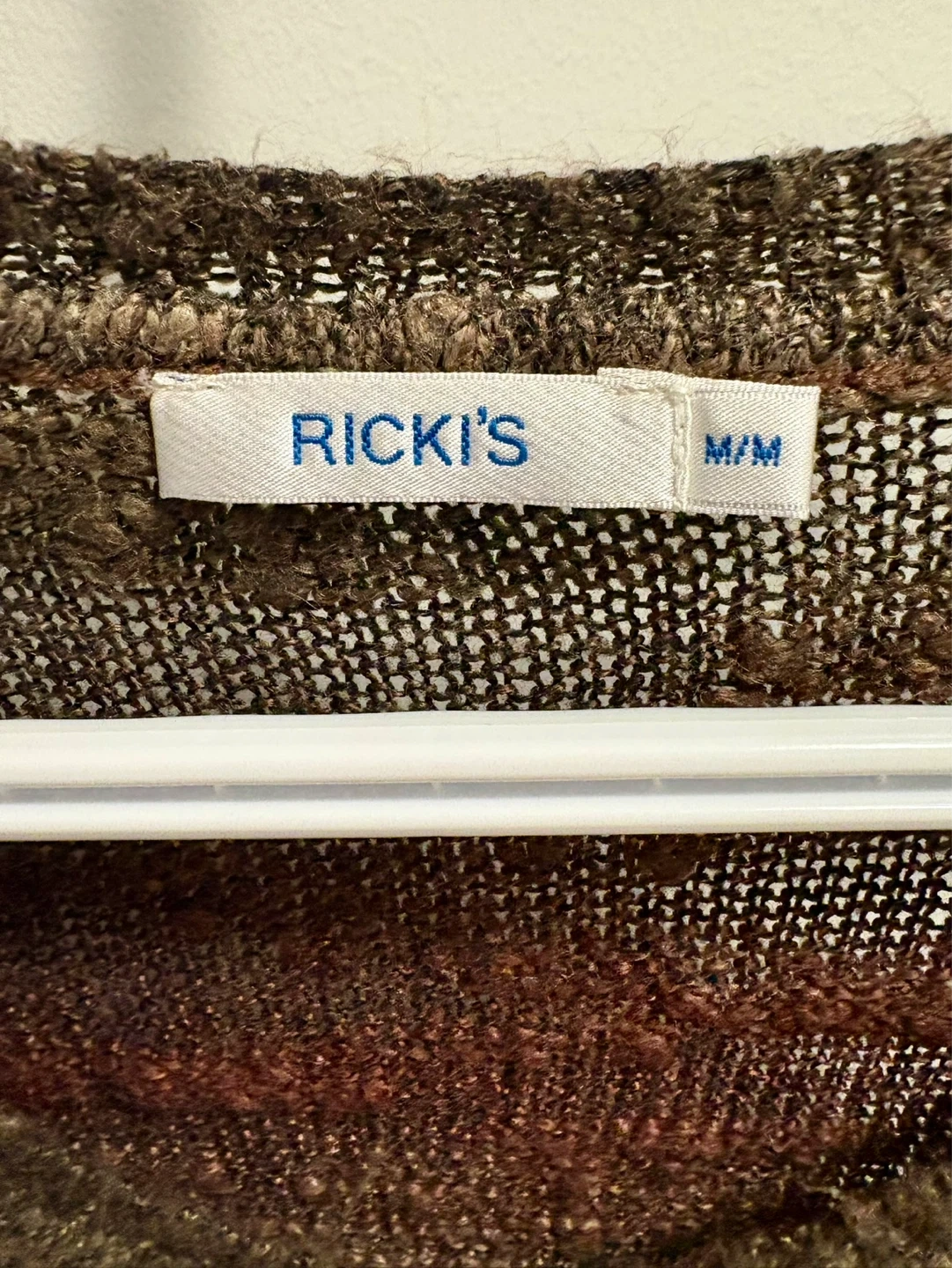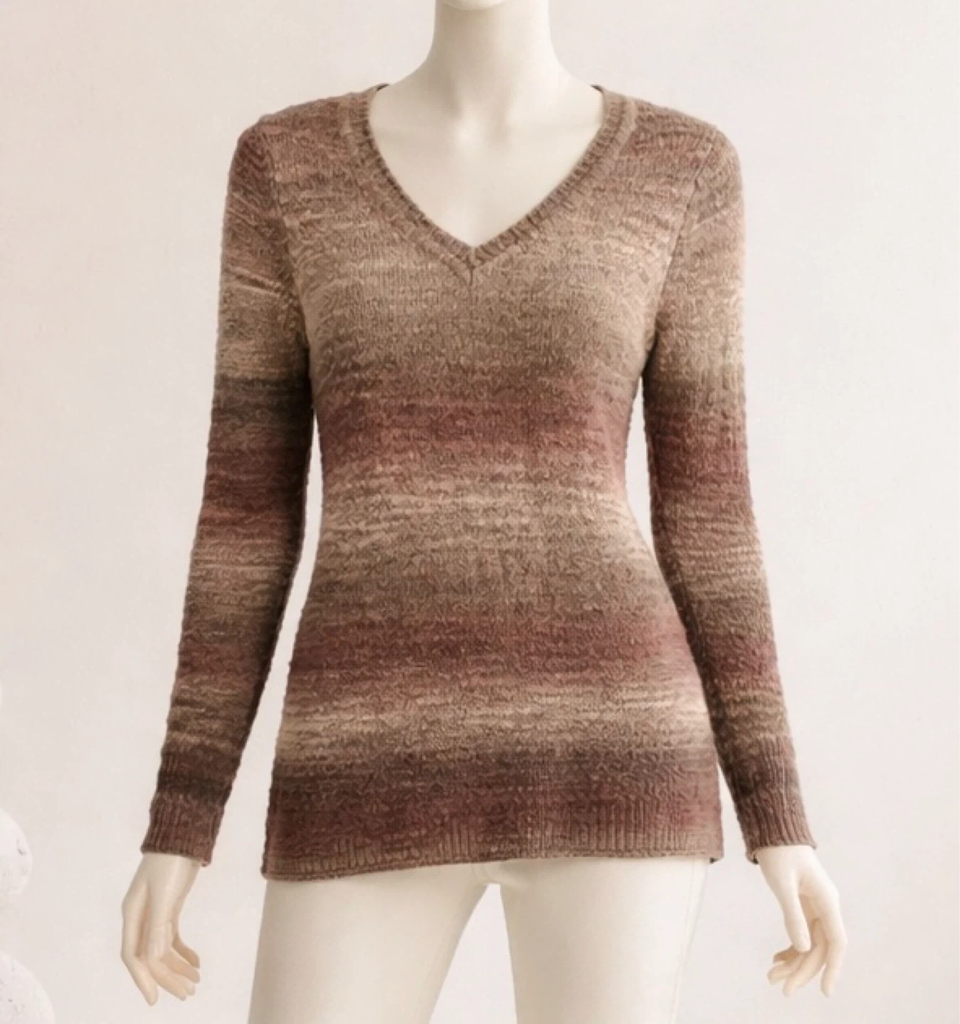 This RICKI'S sweater has a V-neck and long sleeves. It features a multi-tonal striped pattern. Made with a blend of materials for a textured feel.
