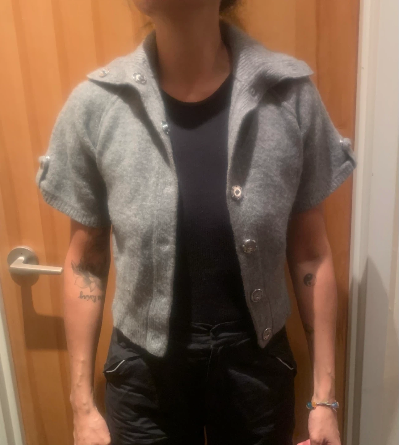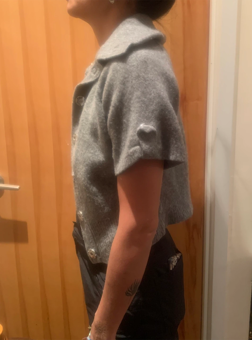 168Cozy Esprit cardigan in a light grey colour! It's made from a blend of 80% wool and 20% rayon, so it's super soft and comfy. The cardigan has a stylish collar and cute button details. Size small. Pick up at Eglinton Ave east at Bayview.