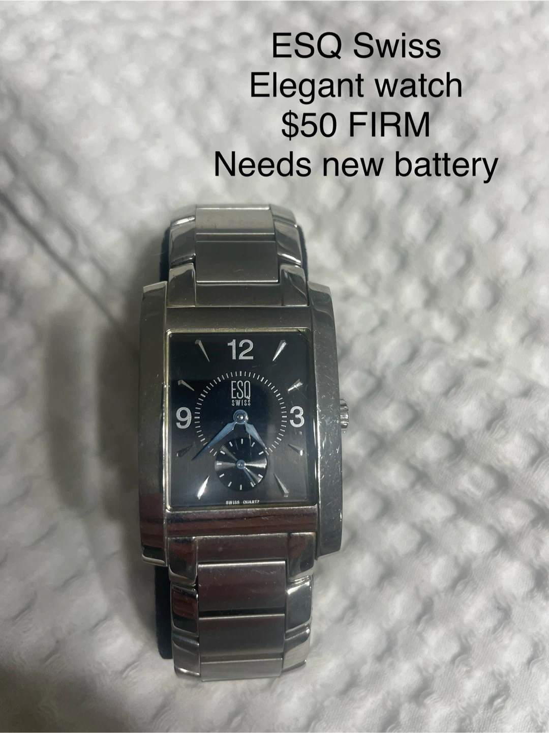 Selling an ESQ Swiss elegant watch. It's a stylish piece, but it needs a new battery. Asking $50 firm.