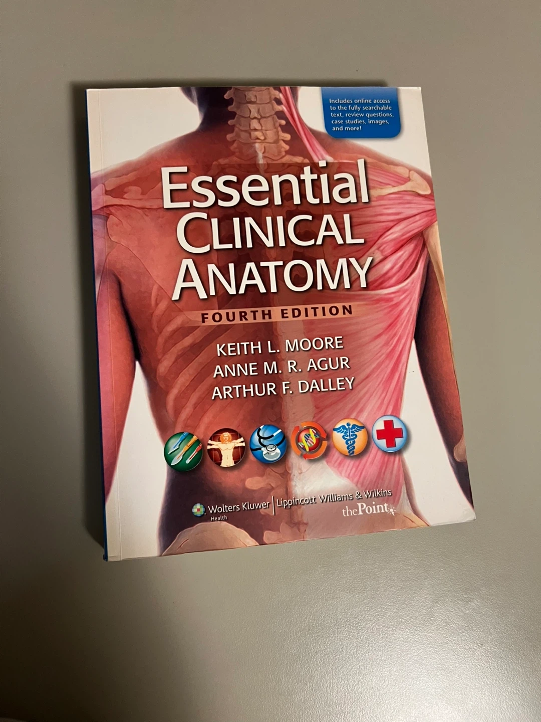 Selling 'Essential Clinical Anatomy, Fourth Edition' textbook. Includes online access to the fully searchable text, review questions, case studies, images, and more!
