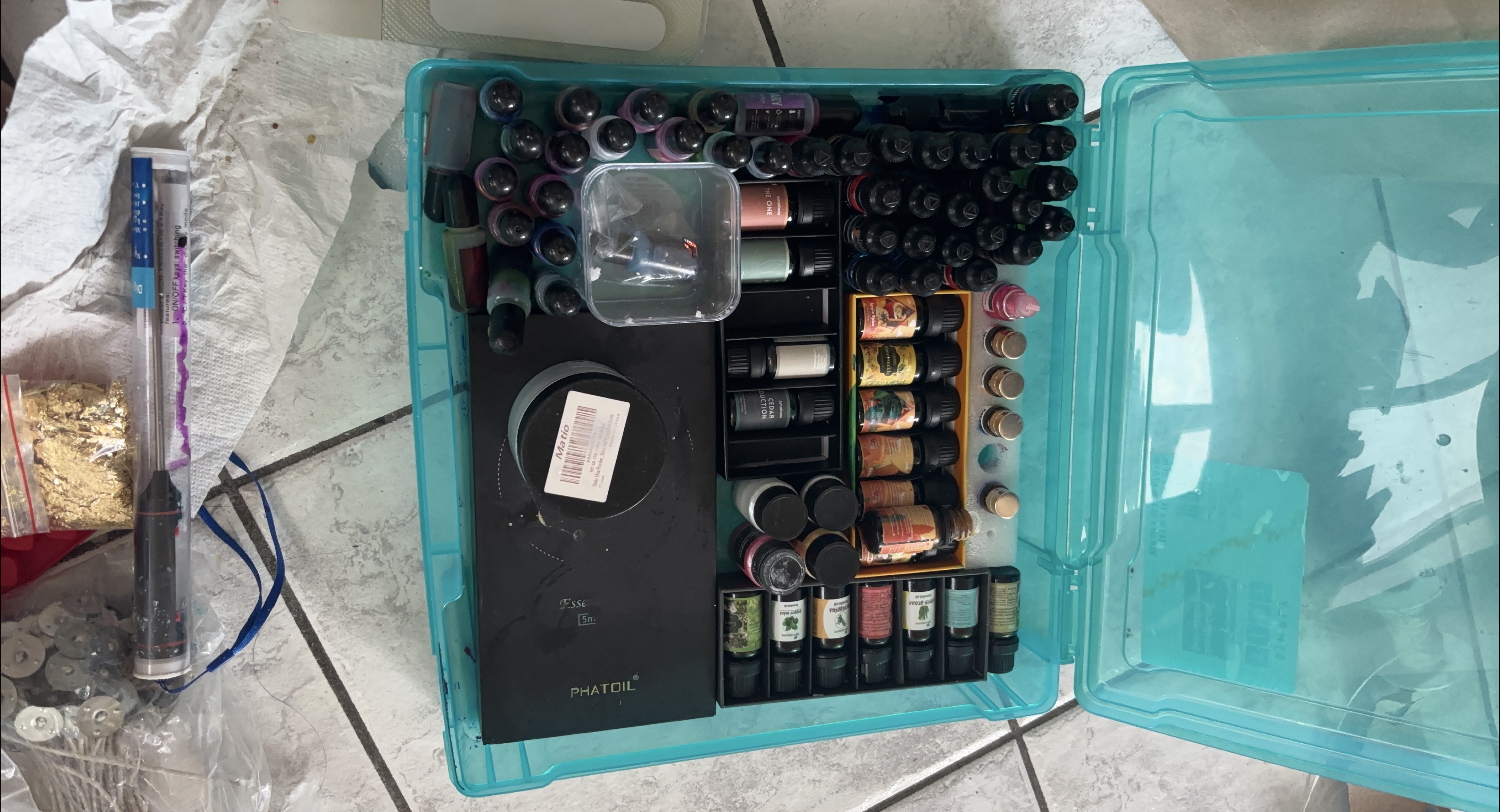 Selling a collection of essential oils, including PHATOIL and Matio brands. Comes in a convenient storage container. Perfect for aromatherapy or DIY projects!