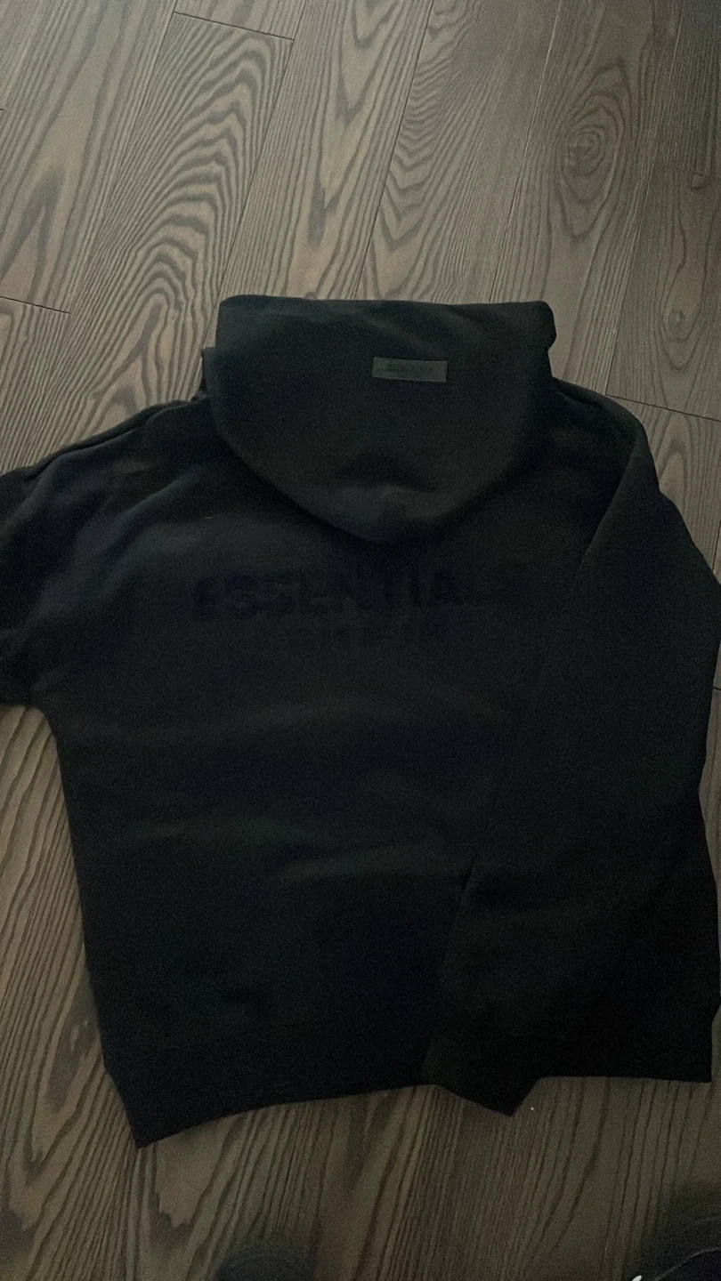 Selling an Essentials hoodie in black. It's in great condition and ready for a new home!