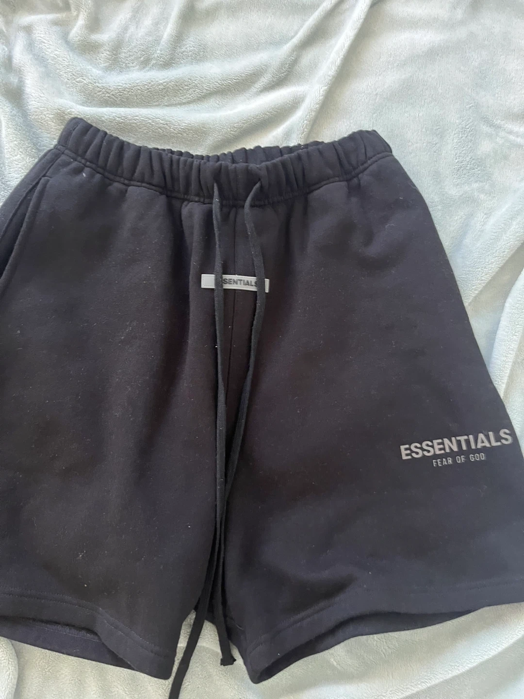 Selling a pair of 2023 black Essentials Fear of God shorts. They're in great condition and super comfy for everyday wear!