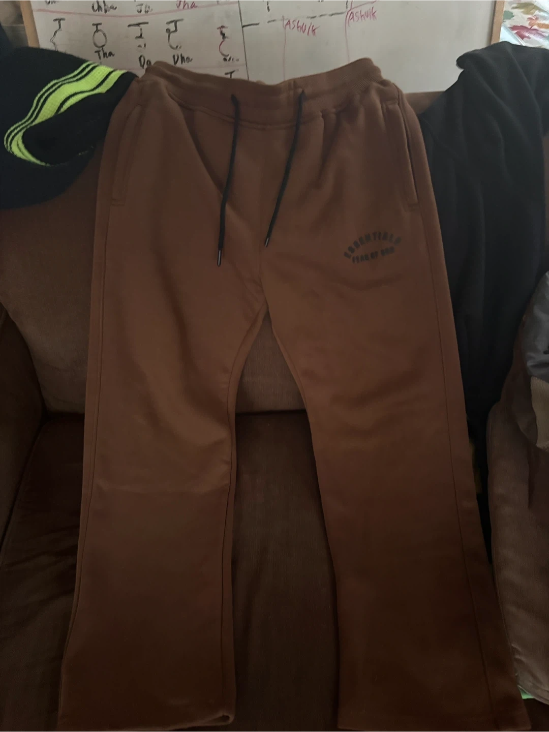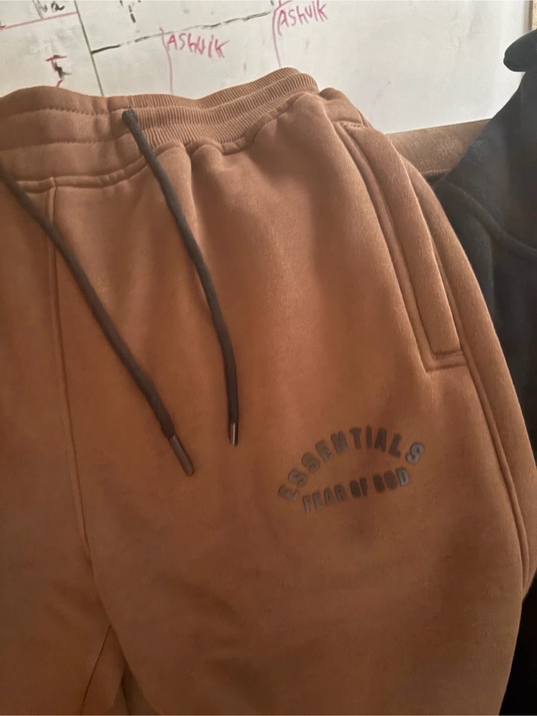 18Comfy brown pants from Essentials Fear of God! These have a drawstring and a zipper pocket on the side. Great for lounging or running errands! 1:1 can work with price