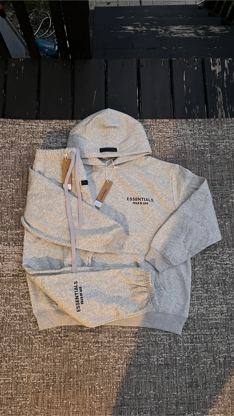 15Selling a brand new Essentials Fear of God hoodie and sweatpants set in size medium and Large. The set is a light grey colour and still has the tags attached! It’s very heavy hoodie and sweatpants Pickup in windfields(Oshawa)