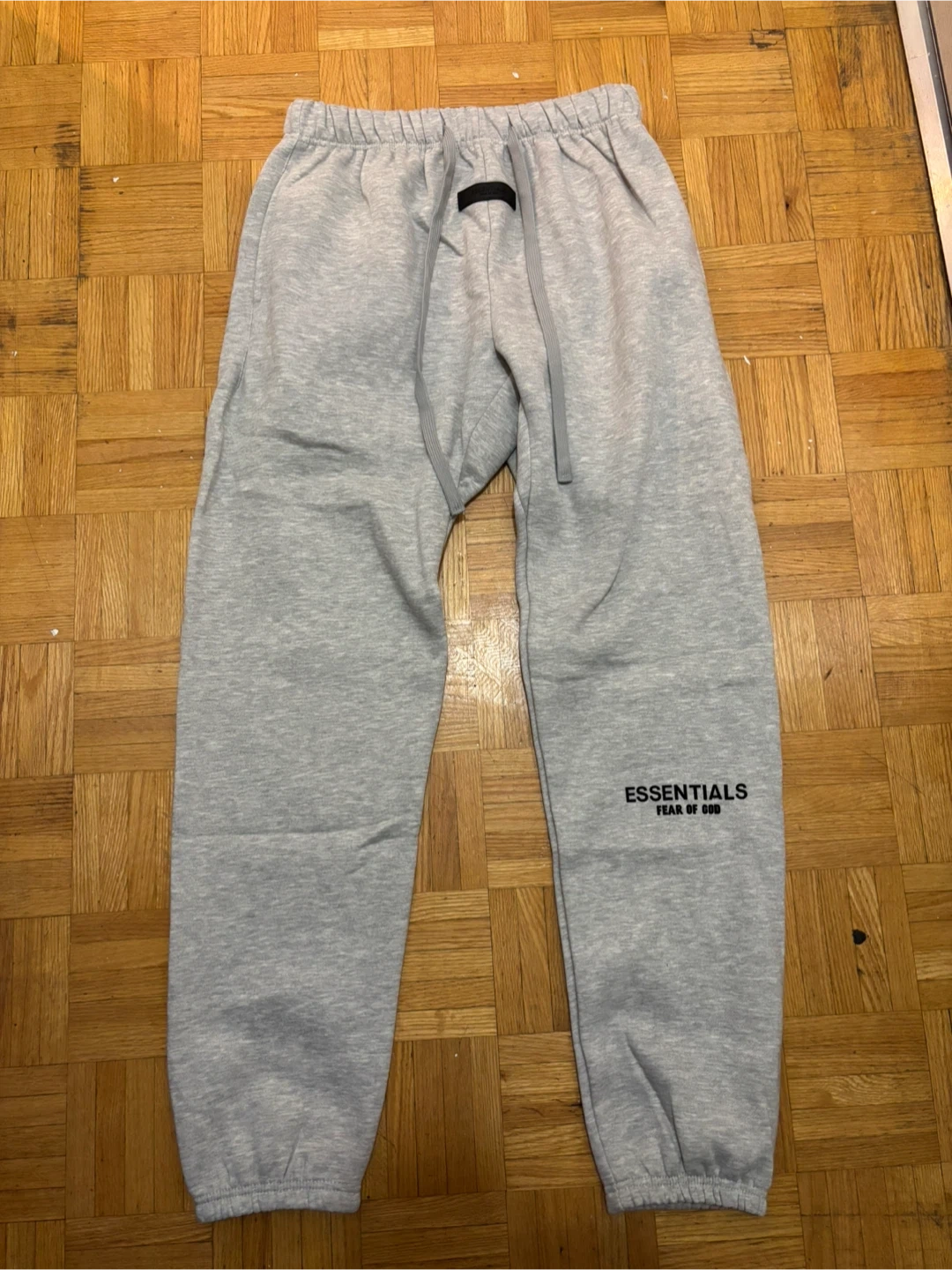 52Selling a pair of Essentials Fear of God sweatpants in grey! They're a size medium and in great condition. Perfect for lounging around the house or running errands. The material is super comfy. Feel free to message me with any questions!