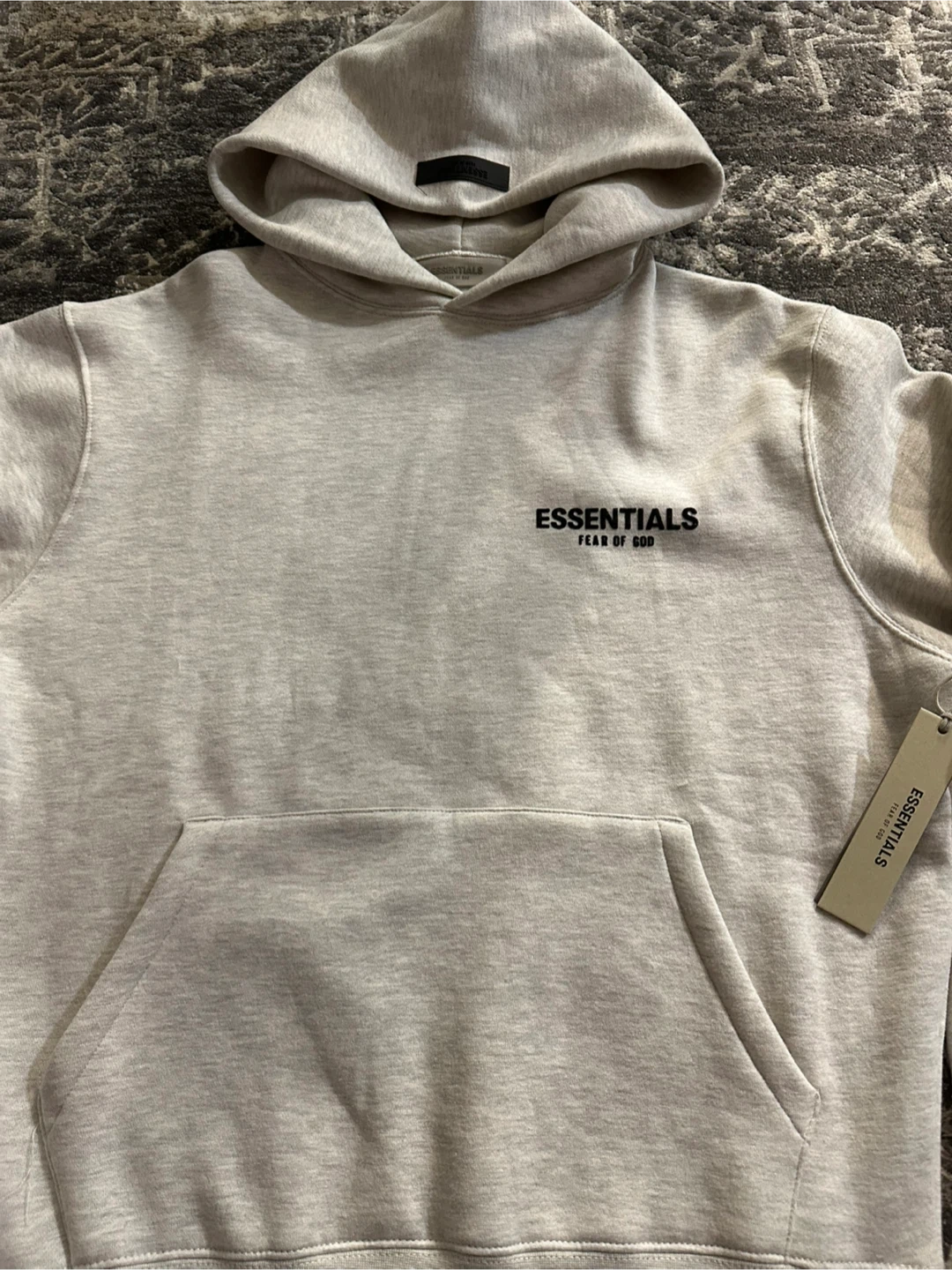 Essentials Fear of God hoodie in size XS. The hoodie is made of 80% cotton and 20% polyester. It's a light grey colour and in great condition if you buy both of them, I could give you a good price