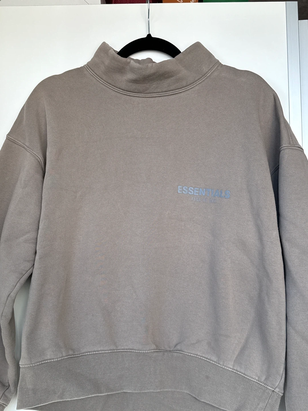 1000+Selling an Essentials Fear of God mockneck sweatshirt. The colour is a neutral, earthy tone. It's in great condition and ready for a new home! This is a men’s xxs fiting like a woman’s small