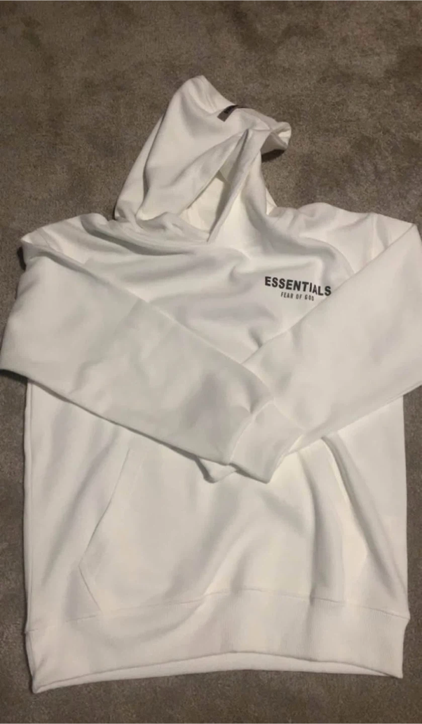 Selling a white hoodie from Essentials Fear of God It's in great condition open to trades 2