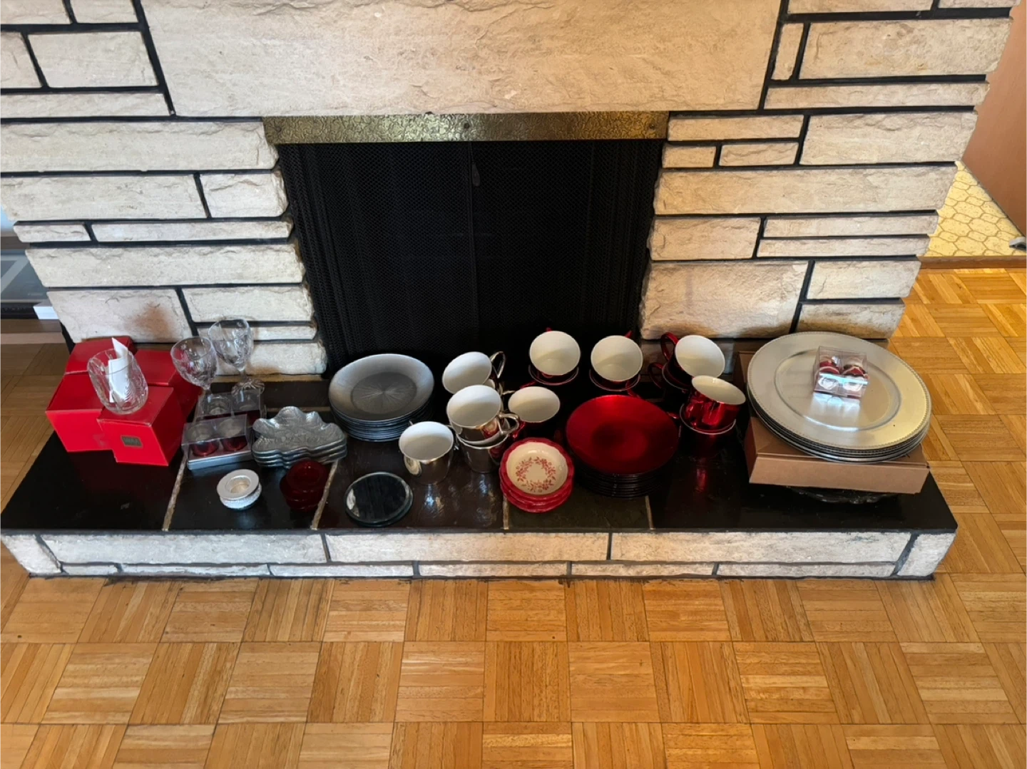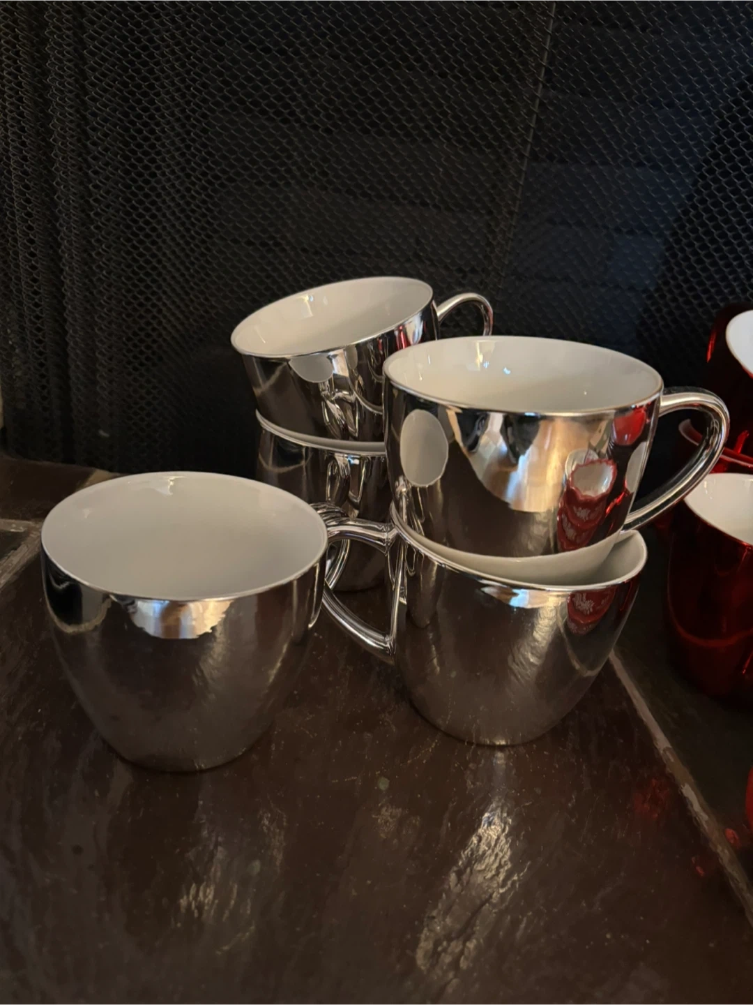 18Selling collection of Christmas decor including plates, mugs and candle holders. Itemized breakdown $75 for everything or best offer *GLASS MUGS AND WINE GLASSES ALREADY CLAIMED* $150 for all or best offer. ITEMIZED BREAKDOWN: - x2 Set of 2 Red Candle Holders (1oz) - Set of 2 Silver Tea Light Candle Holders - Set of 4 Cast Iron Silver Christmas Tree Decorative Plates - Set of 3 Red Glass Tea Light Candle Holder - Set of 10 Silver Plates - Set of 5 Silver Starbucks 2007 Holiday Mugs - Set of 9 Red Starbucks 2007 Holiday Mugs - Set of 3 Red Decorative Stoneware Bowls - Santa and Mrs Claus Salt and Pepper Shaker - Set of 7 Silver Charger Plates