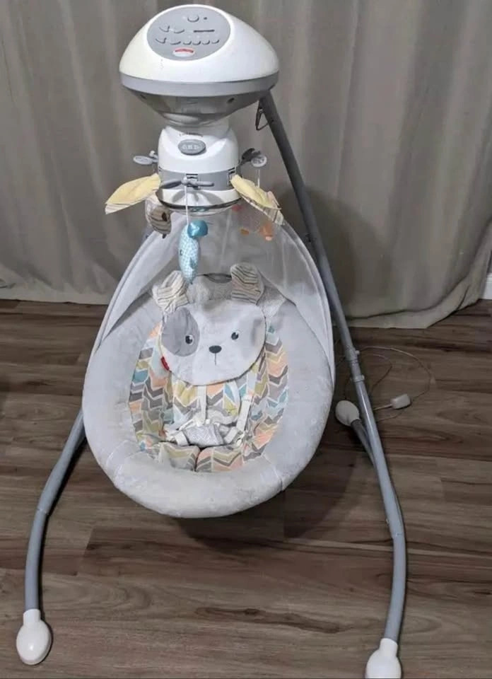 This dual-motion baby swing can rock side-to-side or head-to-toe, with adjustable recline positions and speeds so you can find the perfect calming combination for baby. Multiple speed and song settings. In good condition, reasonably priced at $80 or best offer.
