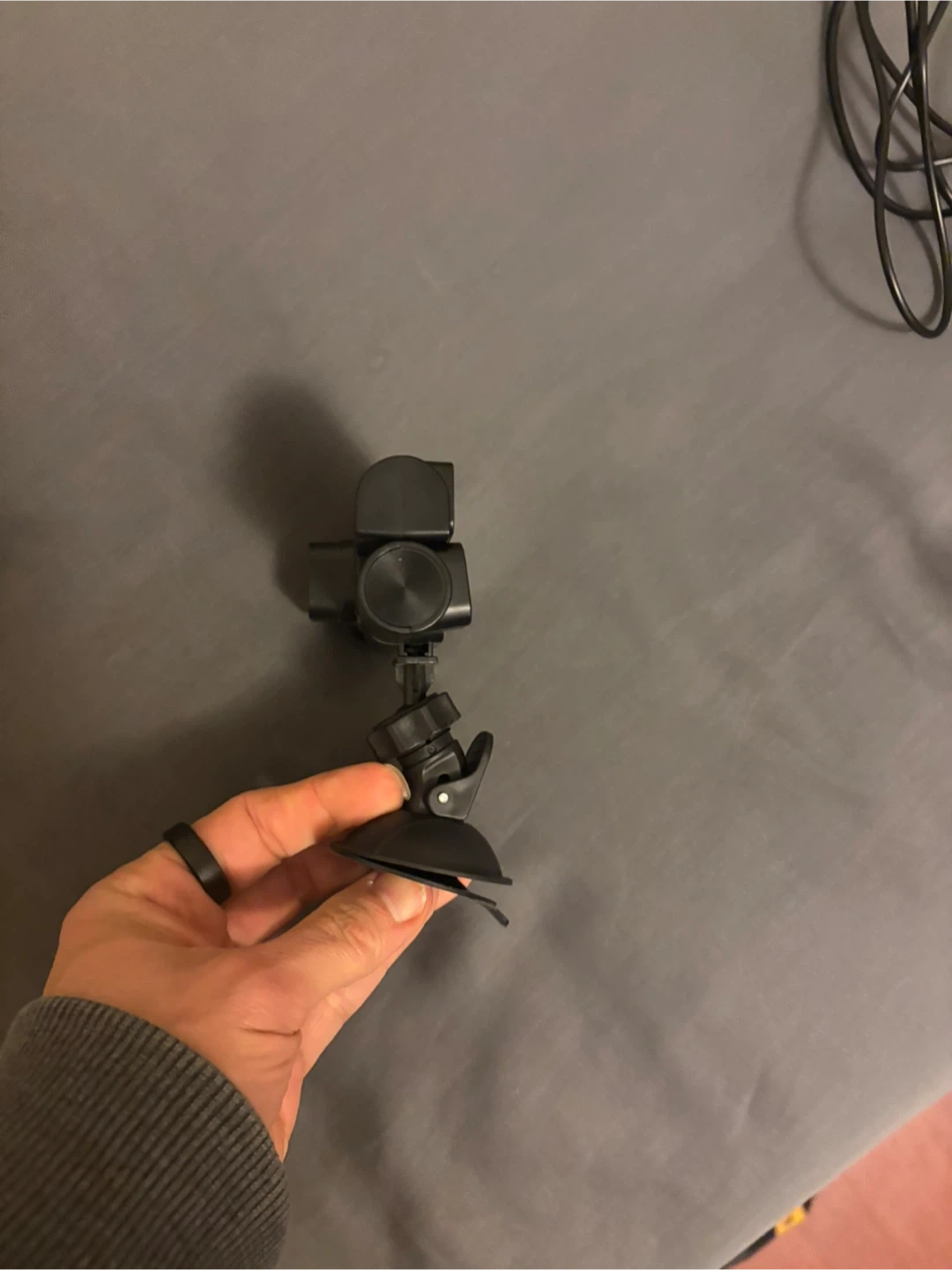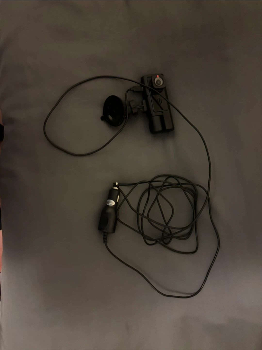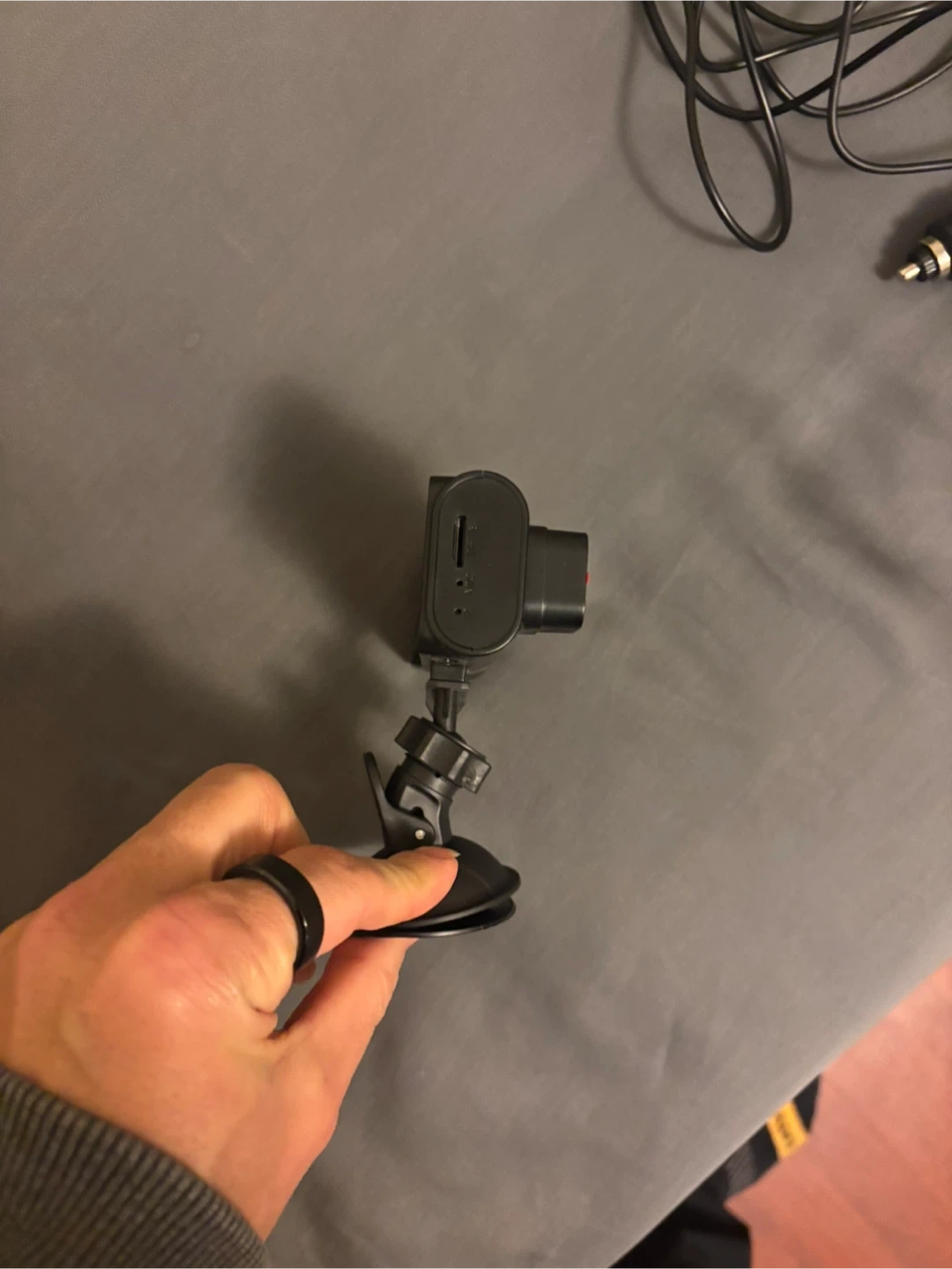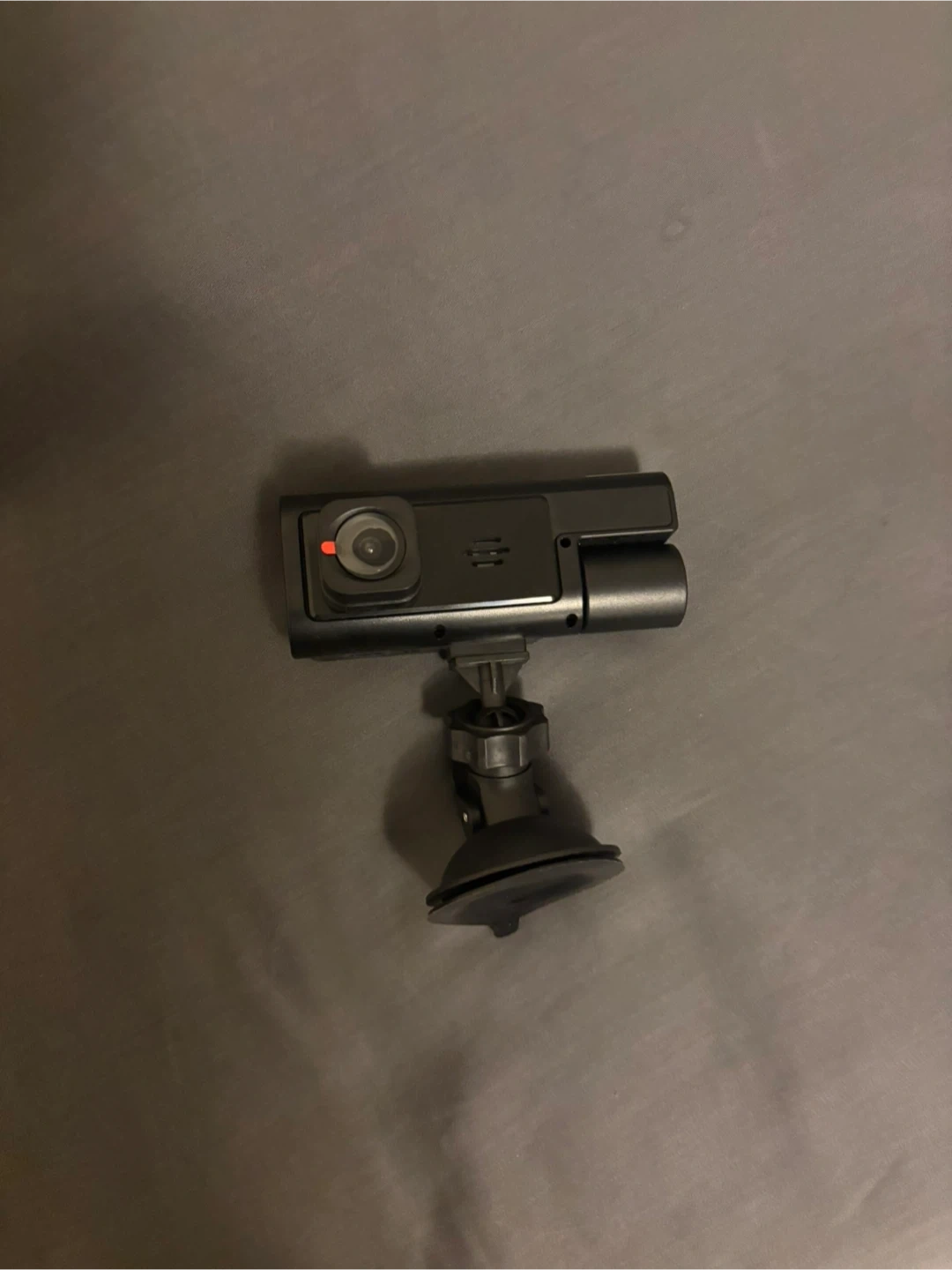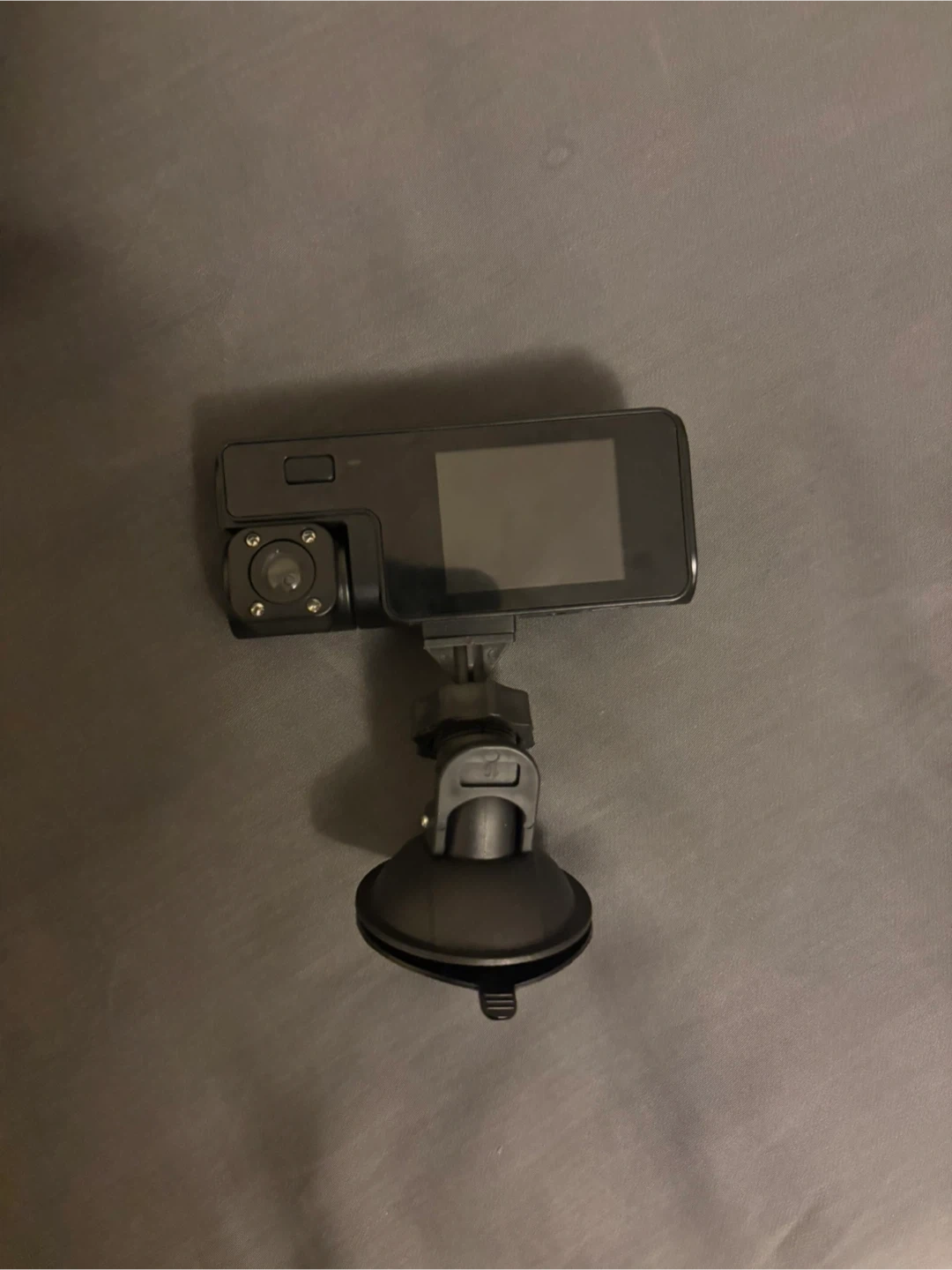 Black Dash Cam with Suction Cup Mount and Car Charger