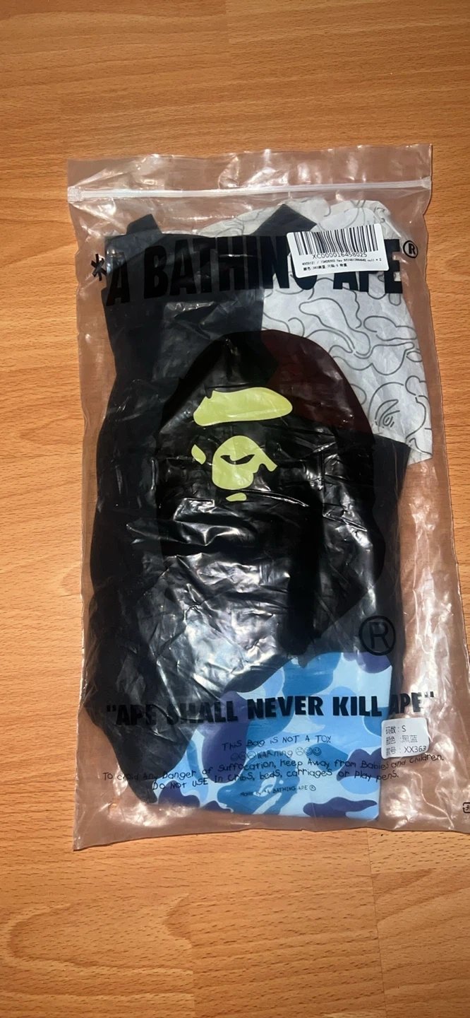 New A Bathing Ape t-shirt in size S. Features the iconic BAPE CAMO pattern. Comes in original packaging.