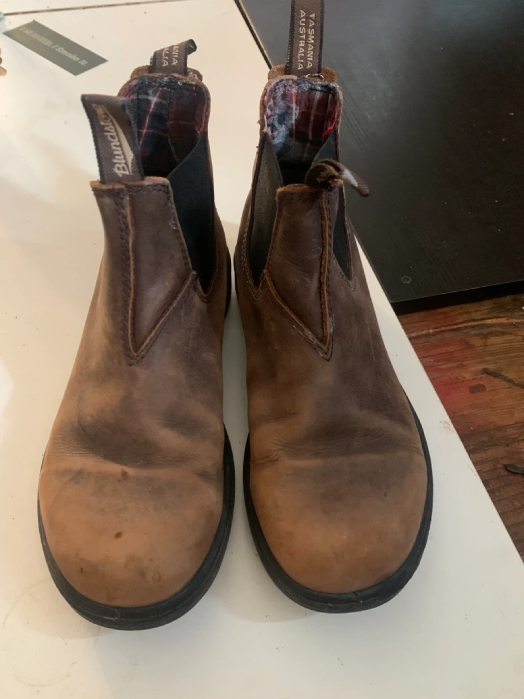 Selling a pair of well-loved Blundstone boots! These are a classic style and still have lots of life left in them. The leather is a nice brown colour, and they're super comfortable for everyday wear. Perfect for the Canadian climate!