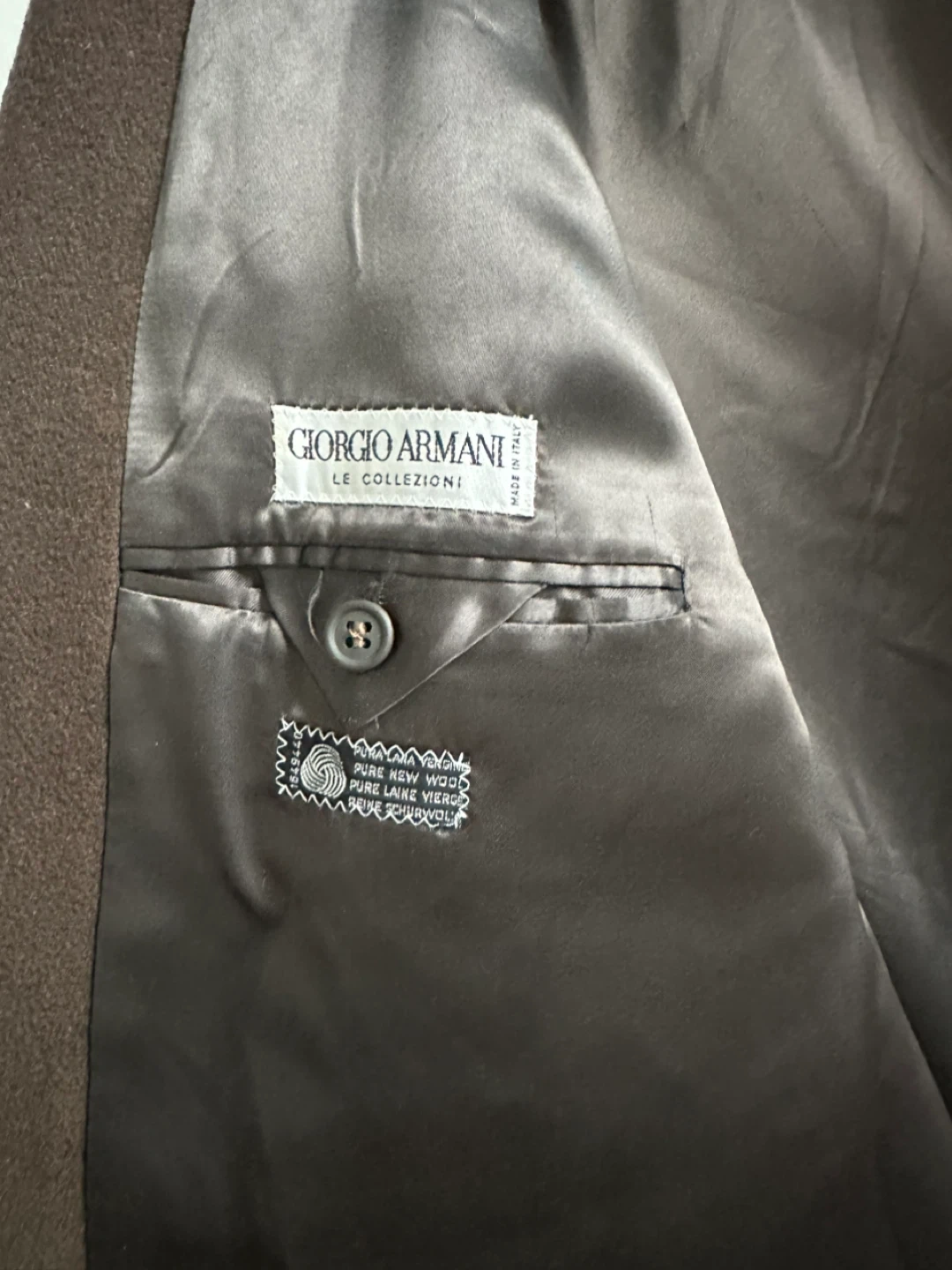 Classic Giorgio Armani Le Collezioni overcoat from Saks Fifth Avenue. Made from pure new wool. Care instructions: dry clean only. Made in Italy. Excellent condition.