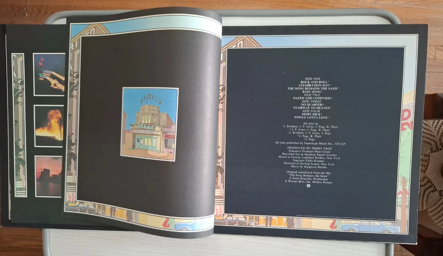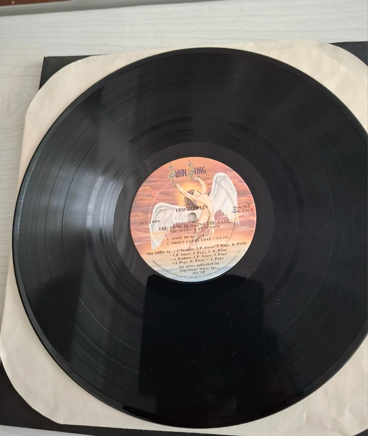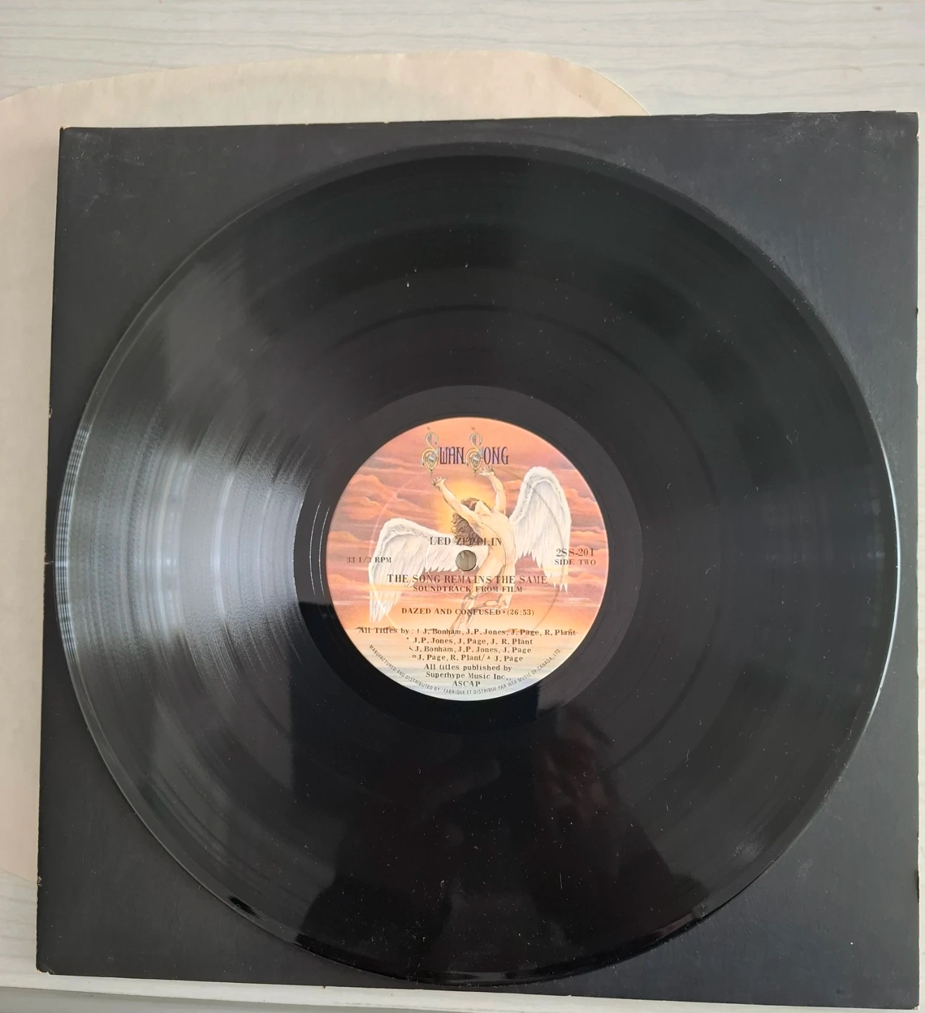 The soundtrack from the film Led Zeppelin: The Song Remains the Same. Features Side One: "Rock and Roll", "Celebration Day", "The Song Remains the Same", "The Rain Song", "Dazed and Confused". Side Two: "No Quarter", "Stairway to Heaven", "Moby Dick", "Whole Lotta Love". Includes original gatefold packaging and liner notes.