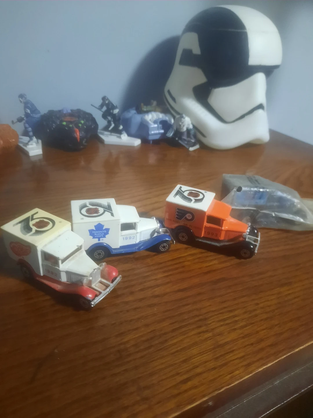 Best offer Collection of three die-cast trucks featuring NHL team logos. Includes Toronto Maple Leafs, Philadelphia Flyers, and Detroit Red Wings designs. Manufactured in 1992 and 1993. A great item for any hockey fan!