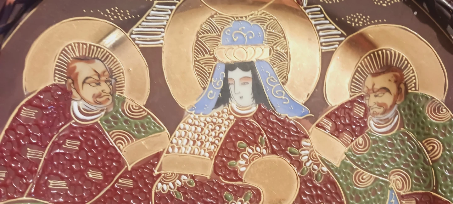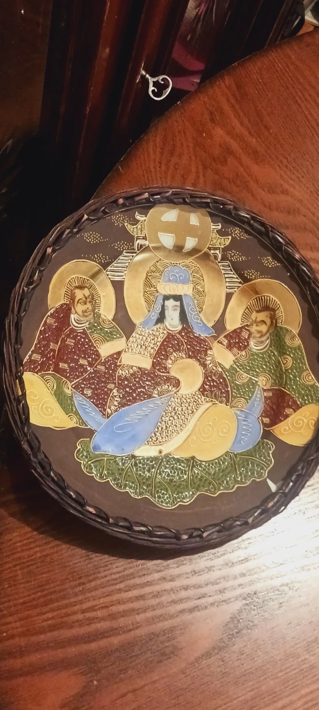 Gorgeous Vintage Japanese Satsuma Handpainted Decorative Plate Depicting Wedding. It's a unique piece for display! The plate has a woven border. 10" diameter. Made in Japan. ALL MY PRICES ARE NEGOTIABLE !!