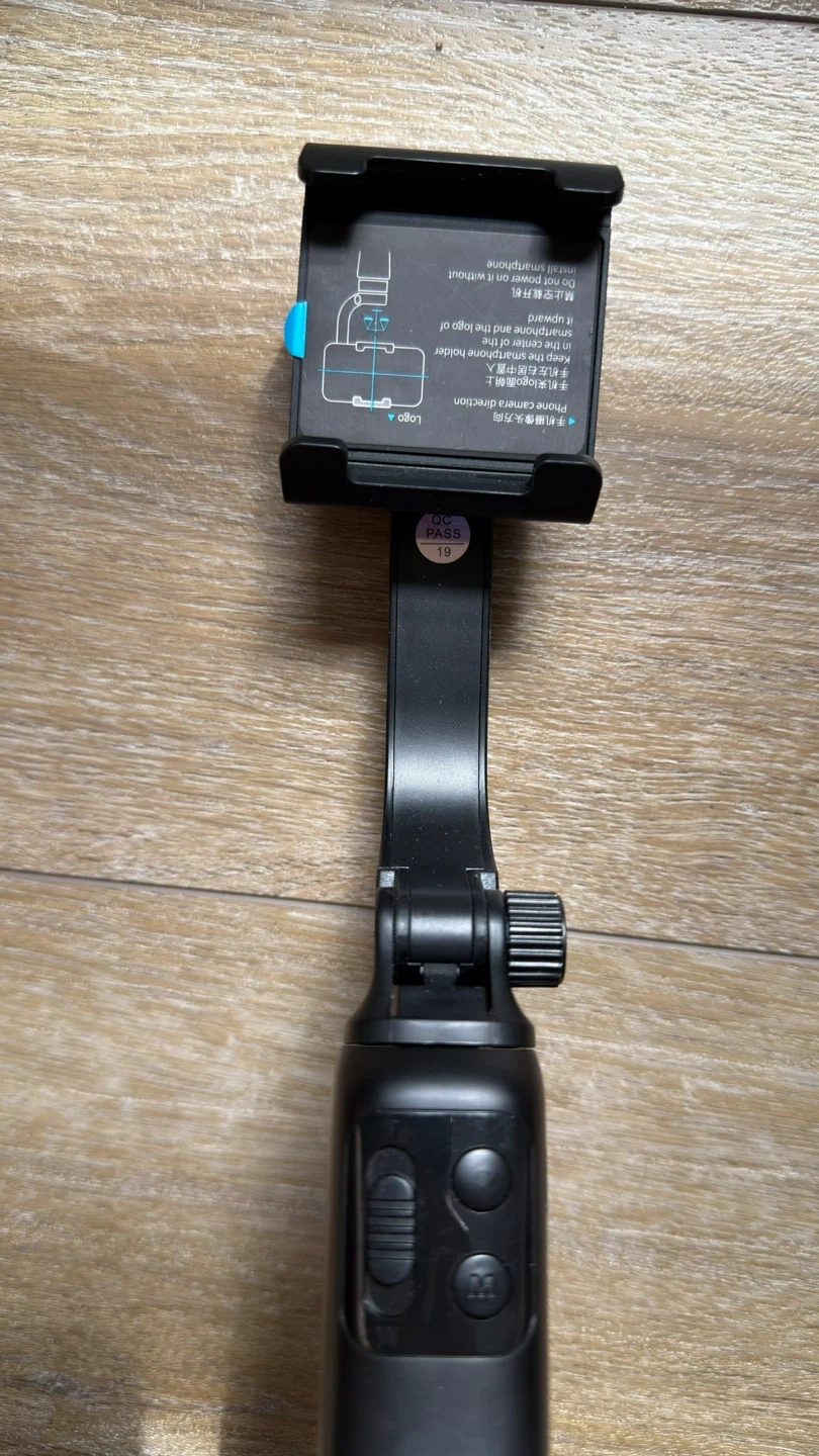 This is a FeiyuTech Vimble One gimbal stabilizer. It's designed for phones. The grip is ergonomic and it's made of black plastic.