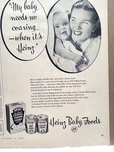 Lot of 2 Vintage Heinz Baby Food Ads 1950 & 1953